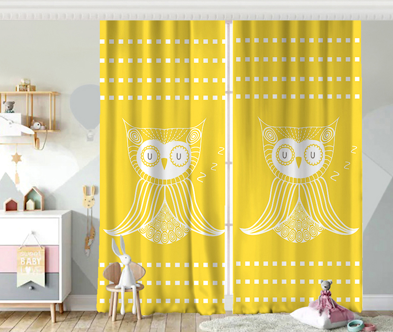 Sarı Zeminde Baykuş Özel Tasarımlı Bebek Odası Fon Perde