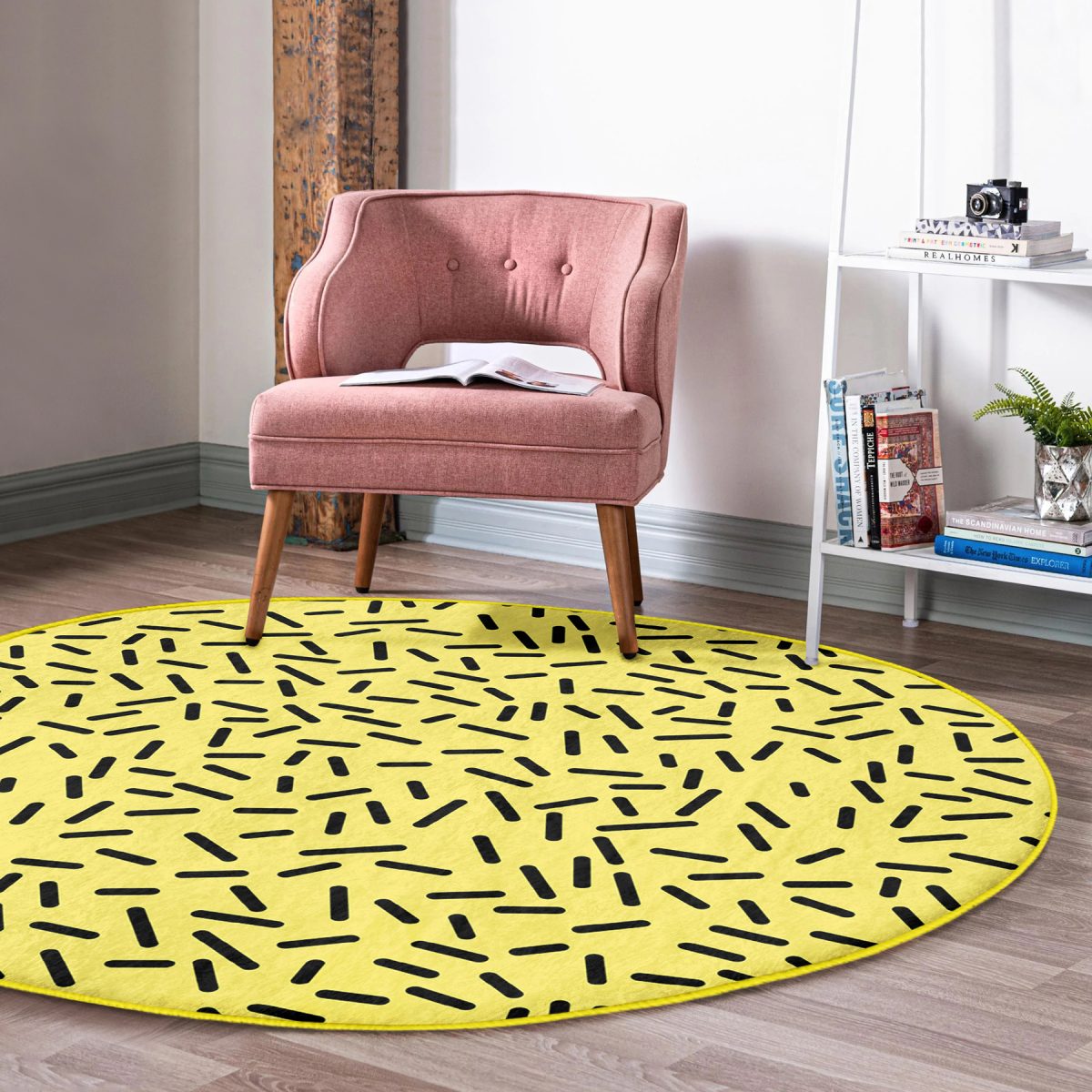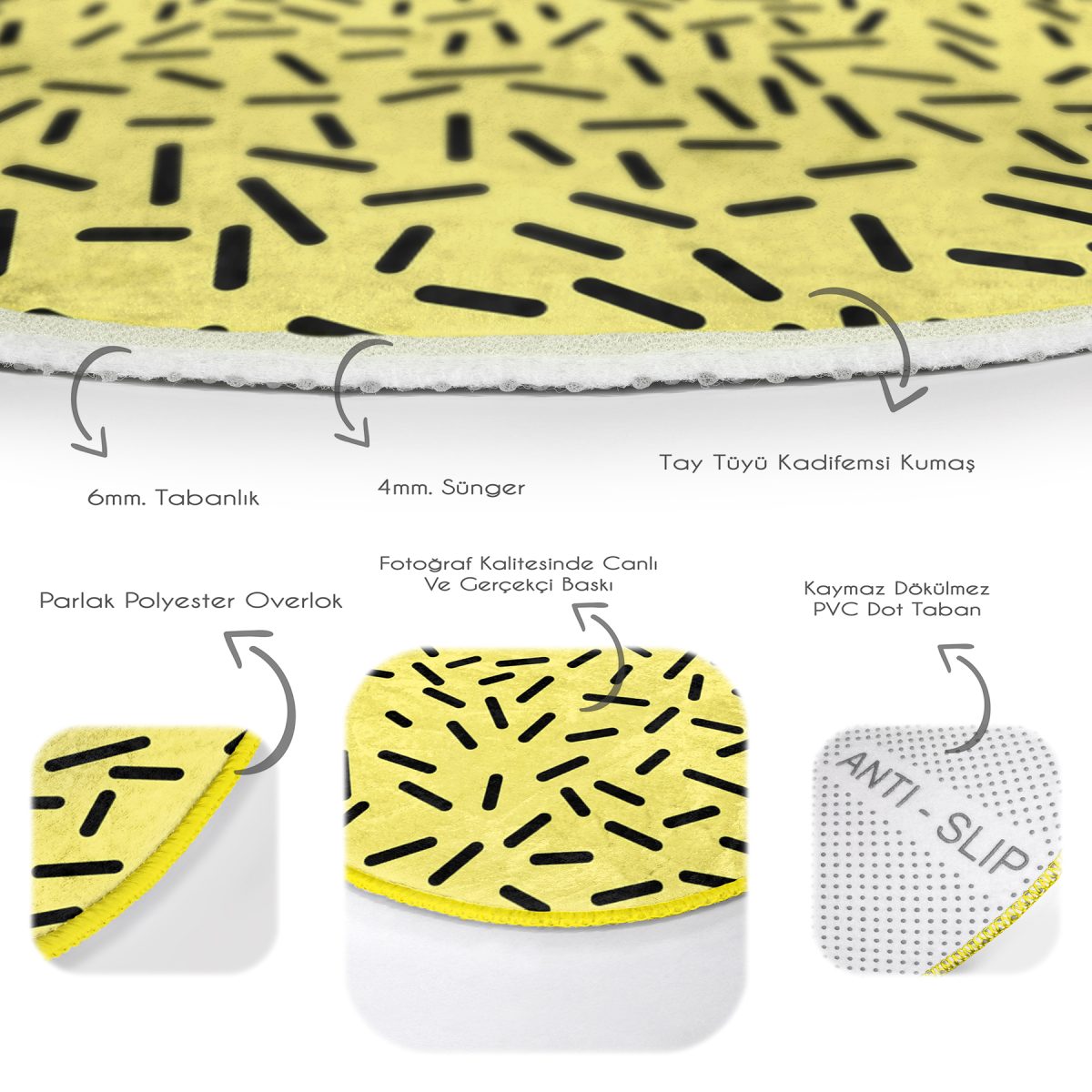 Sarı Zeminde Siyah Puantiye Desenli Dijital Baskılı Modern Gold Çocuk ve Genç Odası Yıkanabilir Kaymaz Tabanlı Yuvarlak Halı