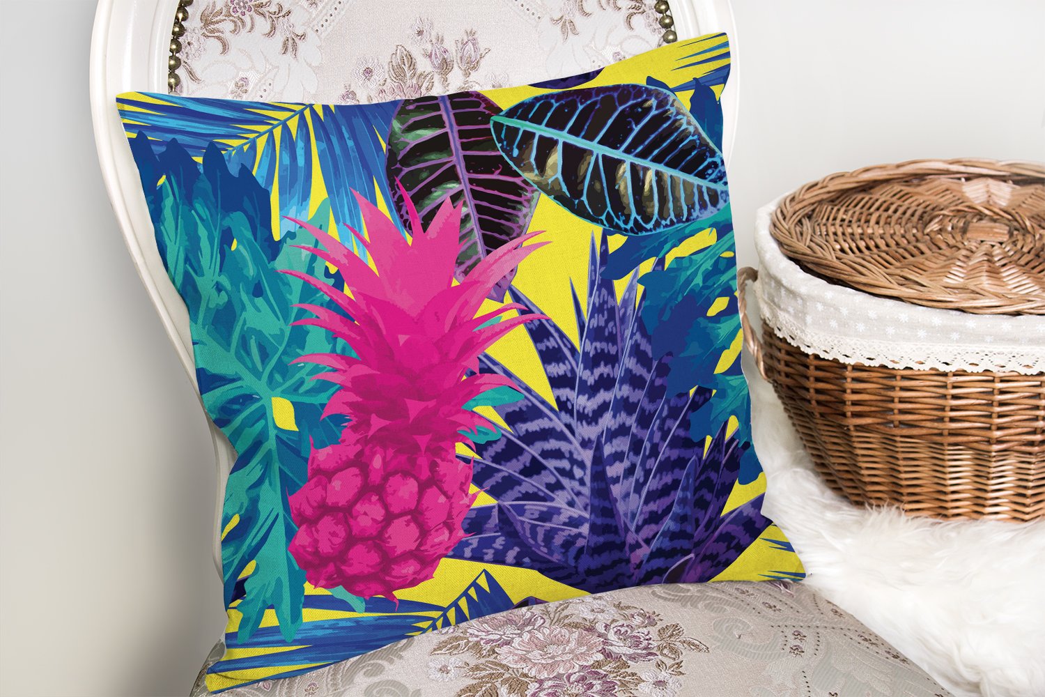 Sarı Zeminde Tropikal Orman Tasarımlı Modern Yastık Kırlent Kılıfı Realhomes