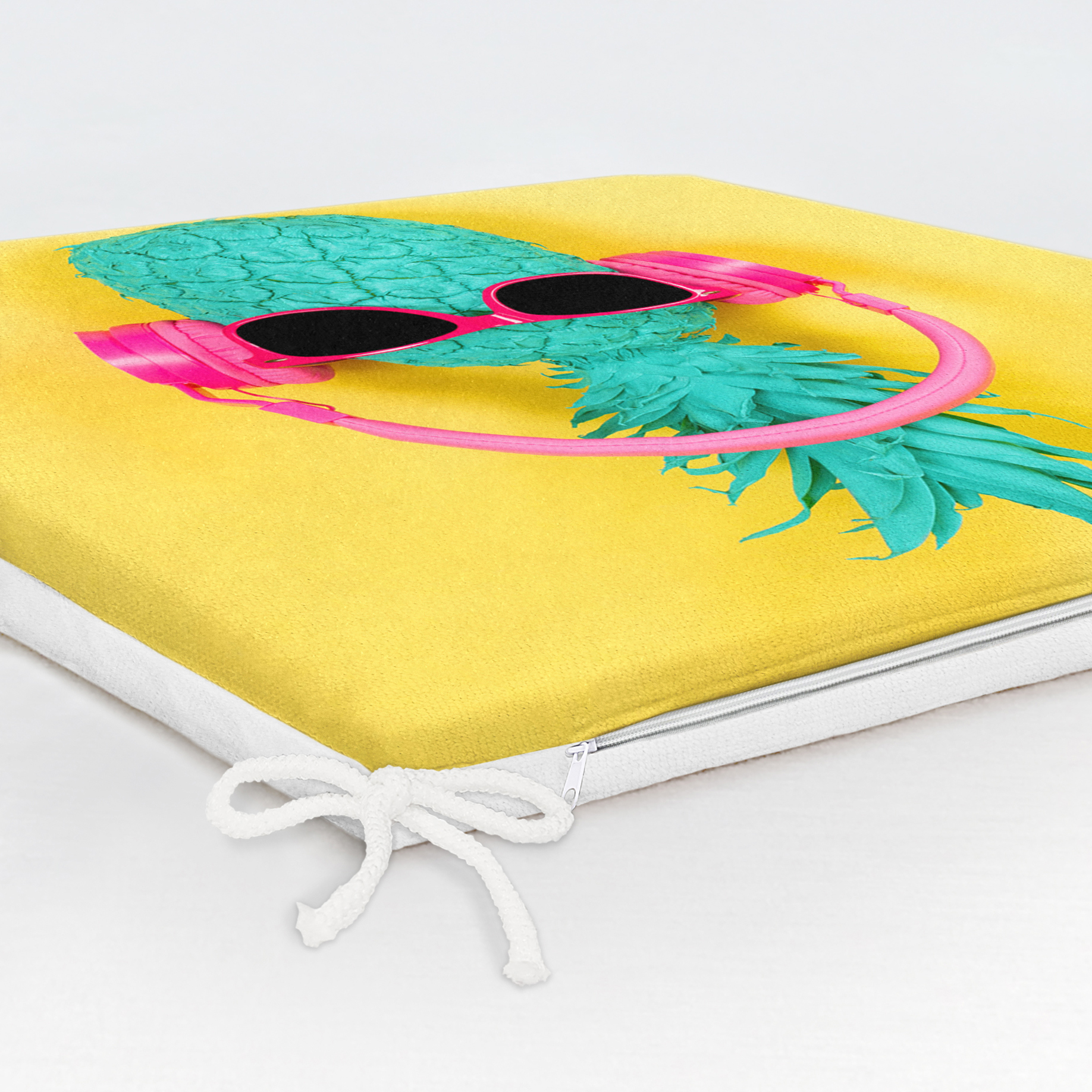 Sarı Zeminli Ananas Detaylı Modern Fermuarlı Sandalye Minderi