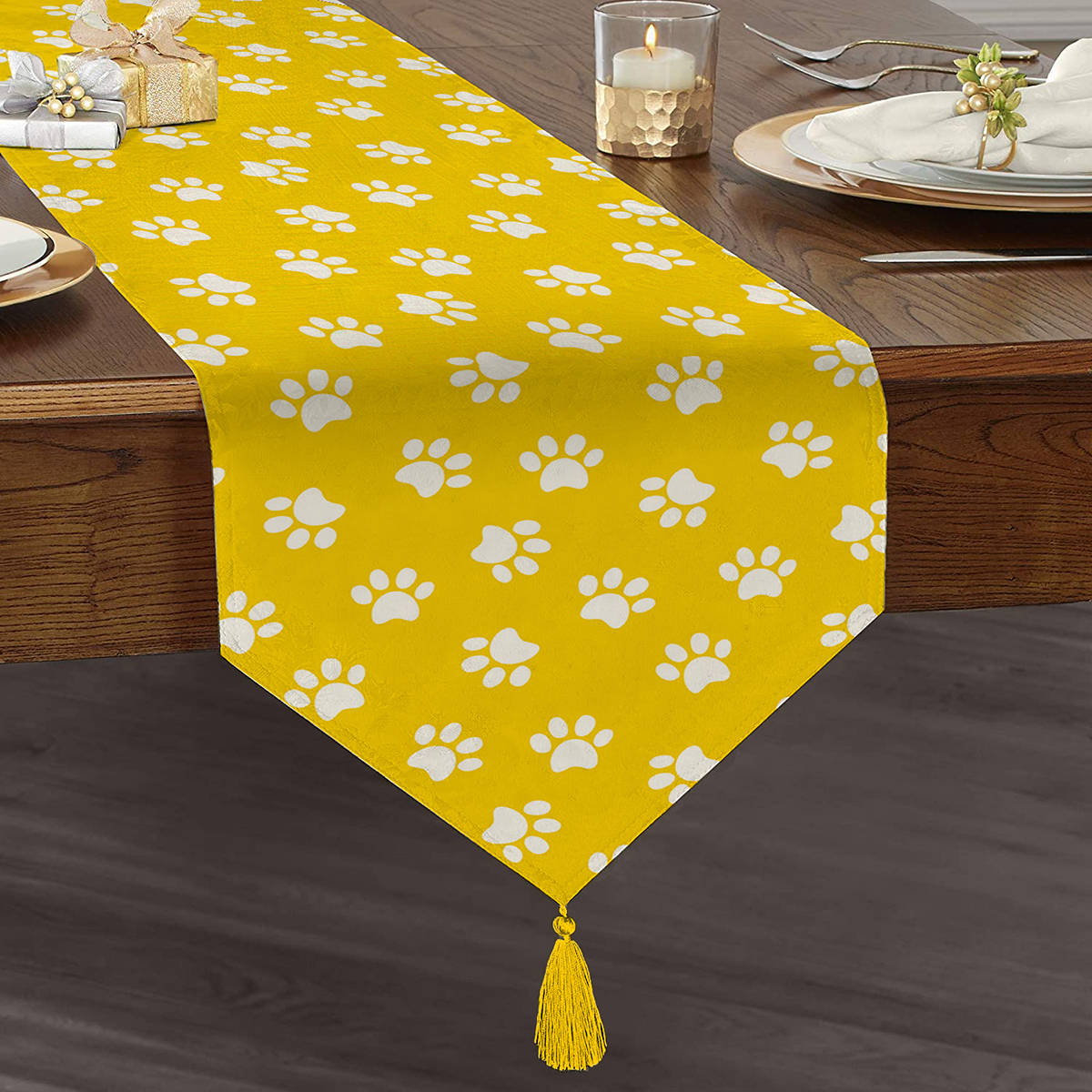 Sarı Zeminli Pati Resimli Dijital Baskılı Dekoratif Püsküllü Şönil Üçgen Runner Realhomes