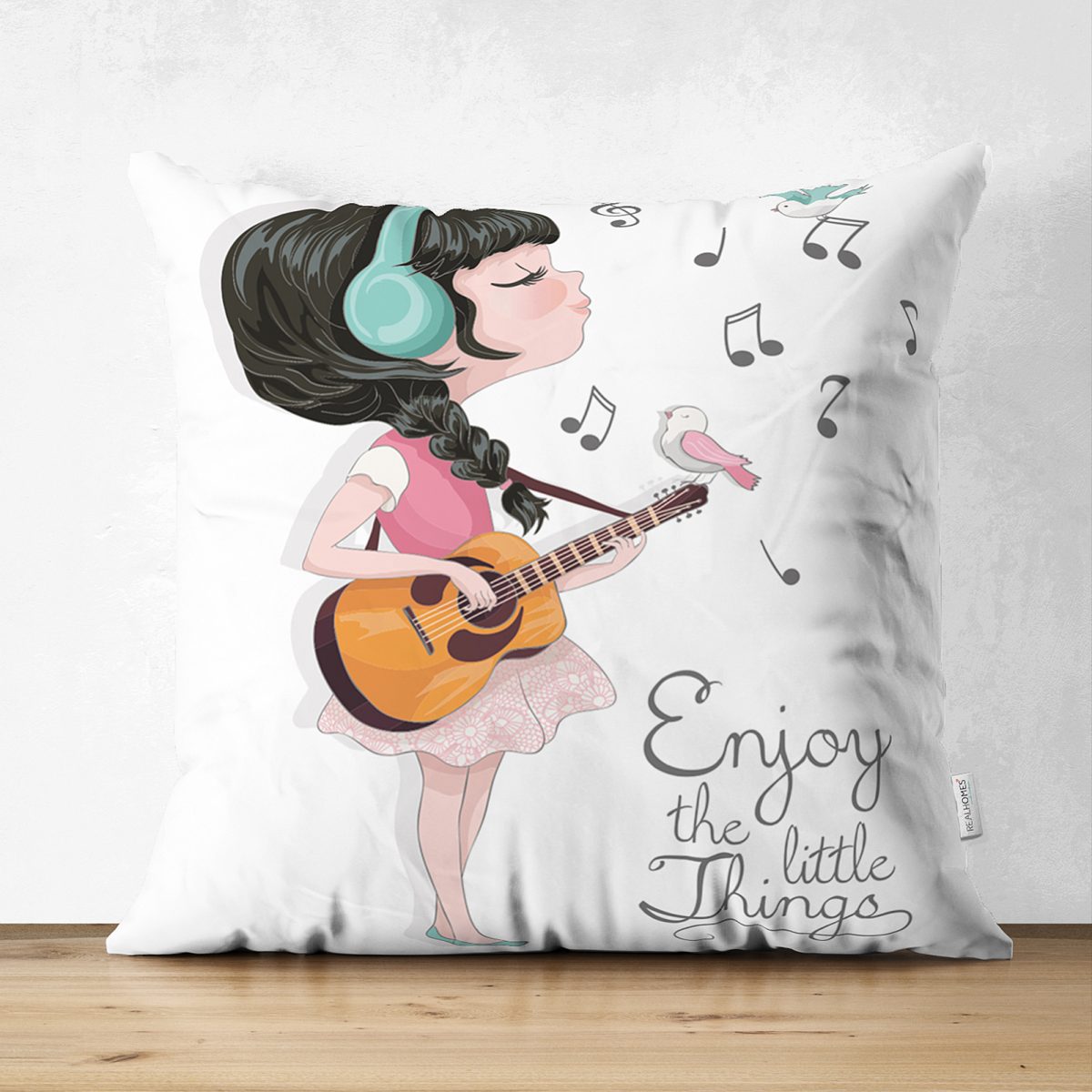 Şarkı Söyleyen Kız Desenli Çift Taraflı Dijital Baskılı Süet Kırlent Kılıfı Realhomes