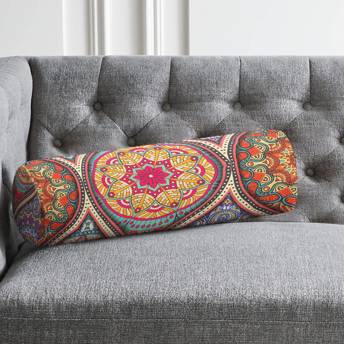 Sarmal Daire Desenli Çini Motifli Dijital Baskılı İç Dolgulu Süet Silindir Yastık Kırlent – Bel Yastığı