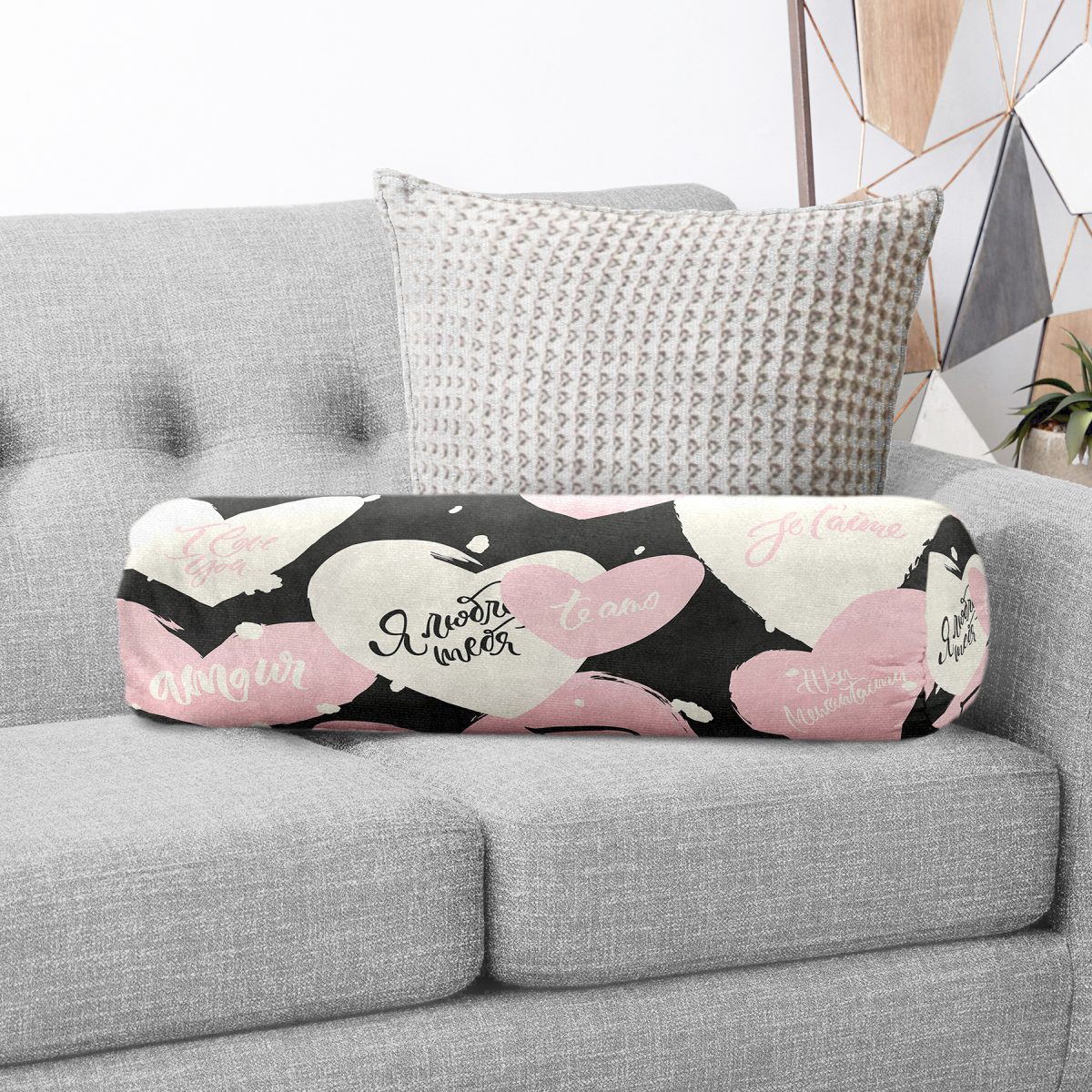 Sevgililer Günü Temalı Özel Tasarım Dijital Baskılı Modern İç Dolgulu – Fermuarlı Süet Berjer Silindir Yastık Kırlent