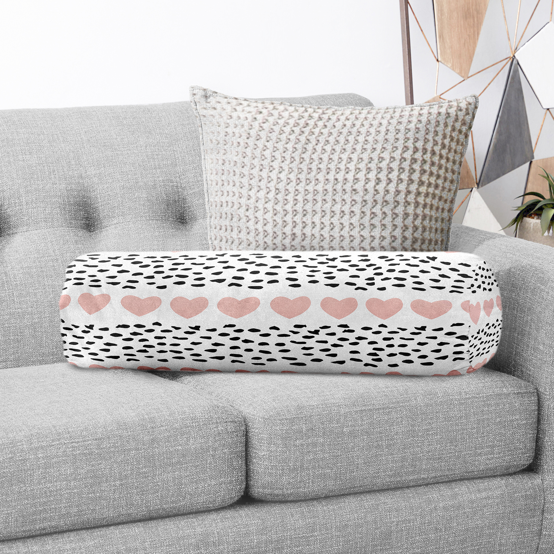 Sevgililer Günü Temalı Özel Tasarım Dijital Baskılı Modern İç Dolgulu – Fermuarlı Süet Silindir Rulo Yastık Kırlent