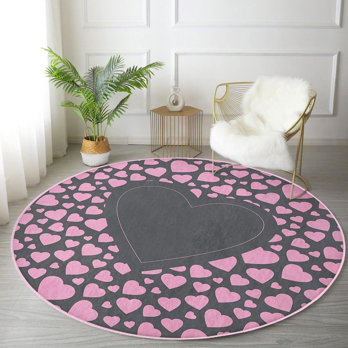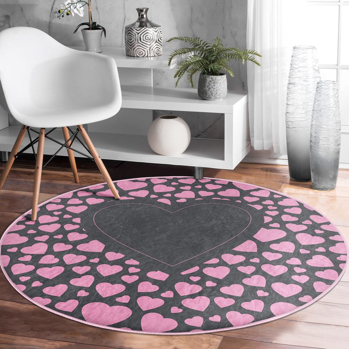 Sevgililer Günü Temalı Özel Tasarım Dijital Baskılı Modern Pembe Yatak Odası Yıkanabilir Kaymaz Tabanlı Yuvarlak Halı