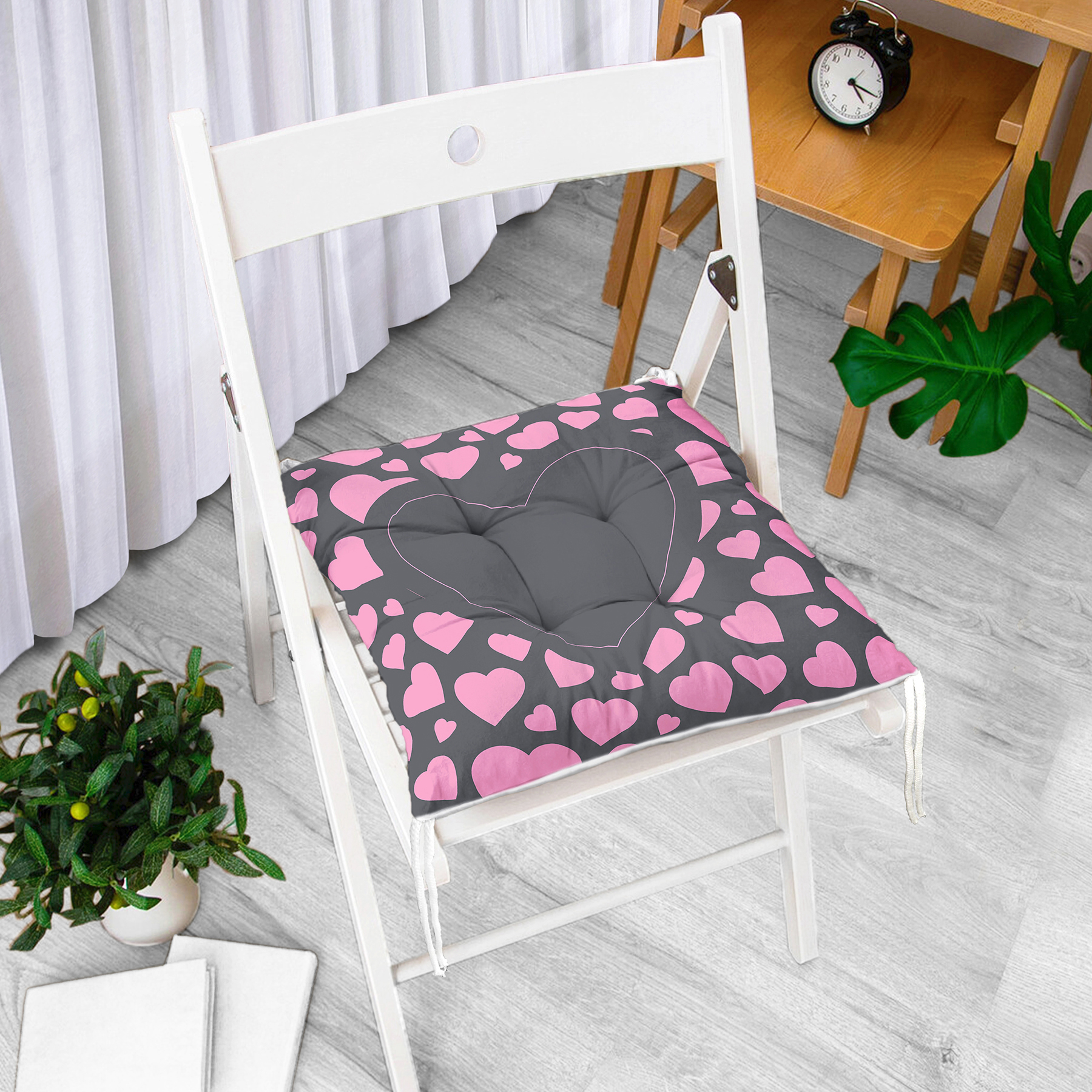 Sevgililer Günü Temalı Özel Tasarım Dijital Baskılı Modern Pofuduk Sandalye Minderi