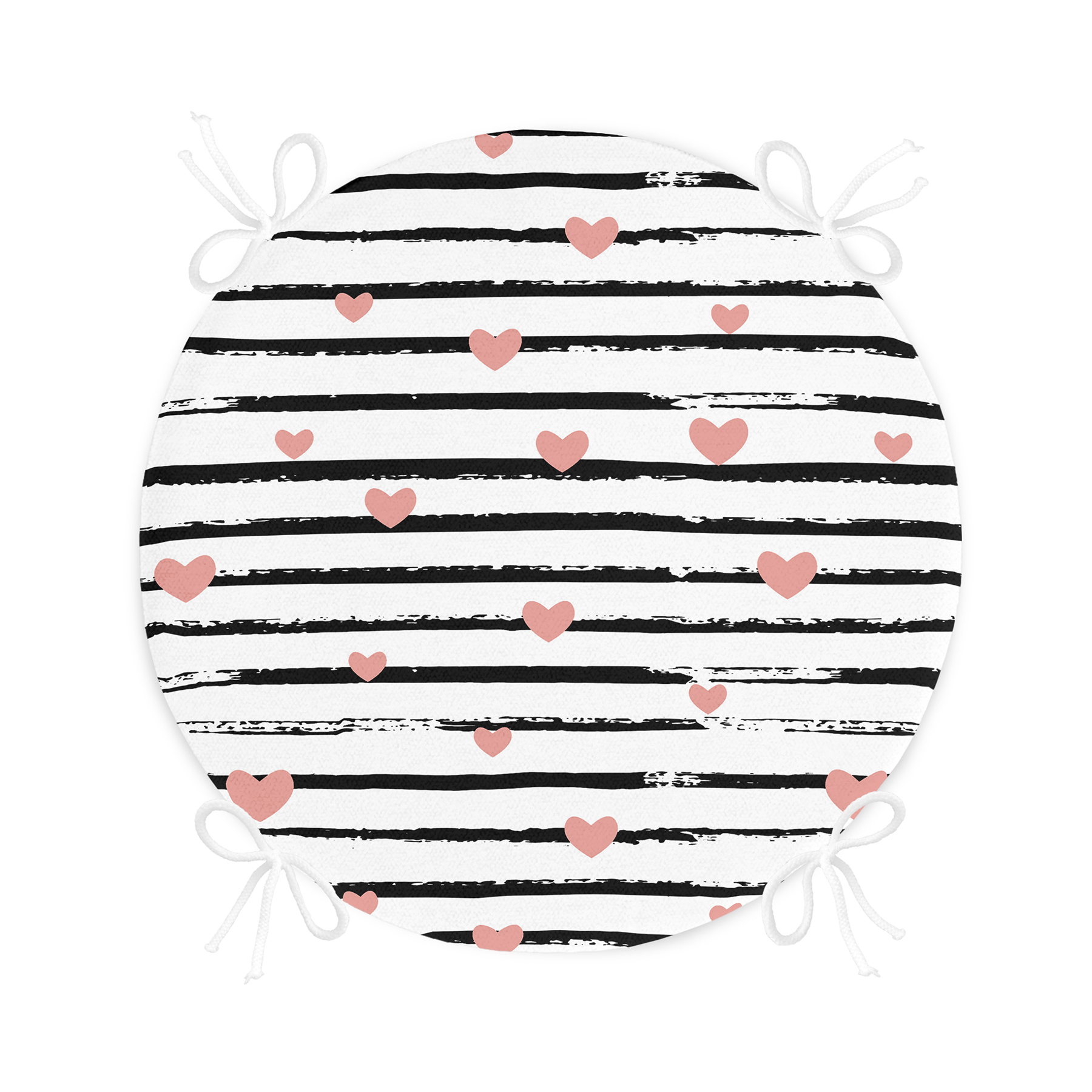 Sevgililer Günü Temalı Özel Tasarım Dijital Baskılı Modern Yuvarlak Fermuarlı Sandalye Minderi