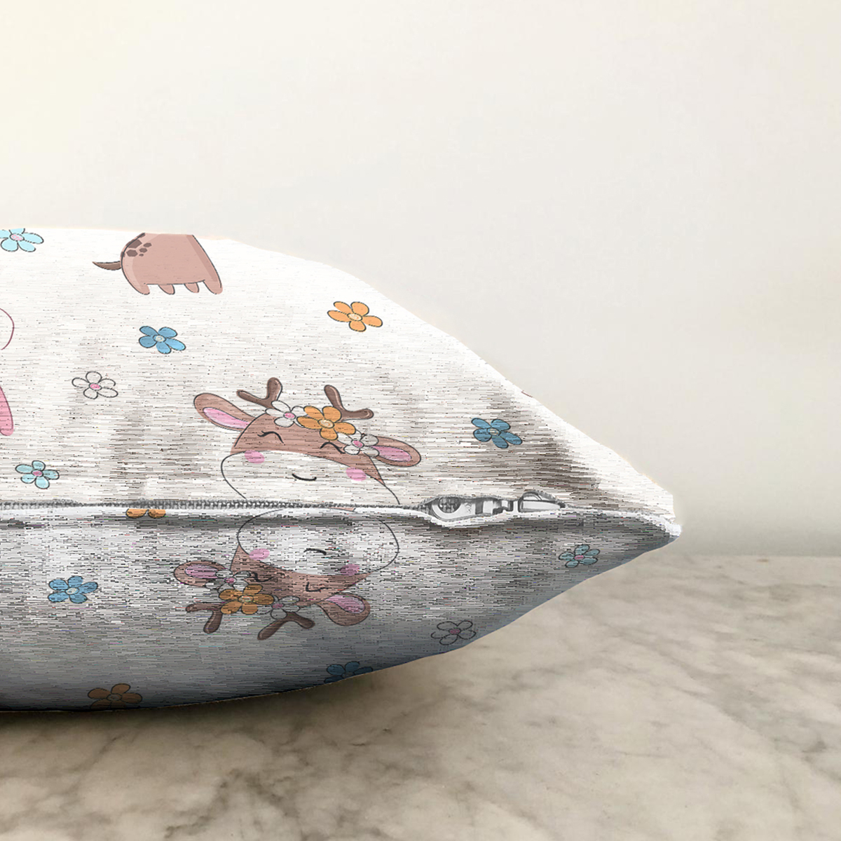 Sevimli Geyik Desenli Dijital Baskılı Özel Tasarım Modern Raşel Kadife Yastık Kırlent Kılıfı
