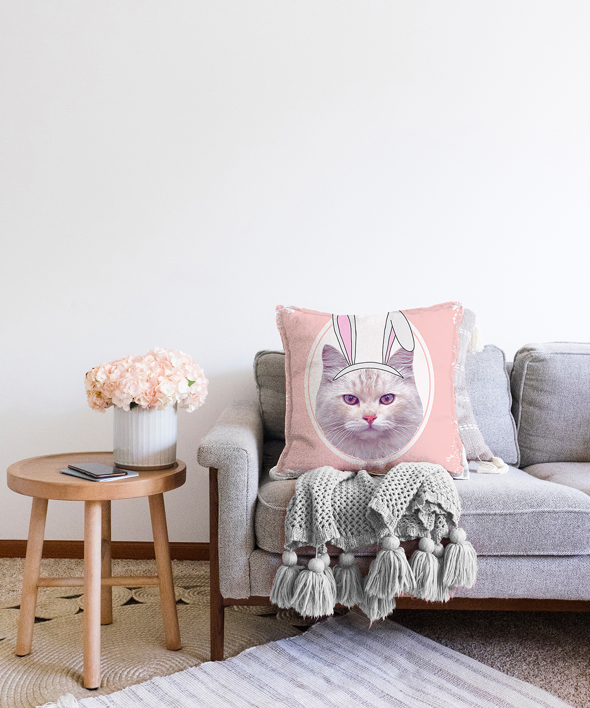 Sevimli Kedi Desenli Dijital Baskılı Modern Raşel Kadife Yastık Kırlent Kılıfı