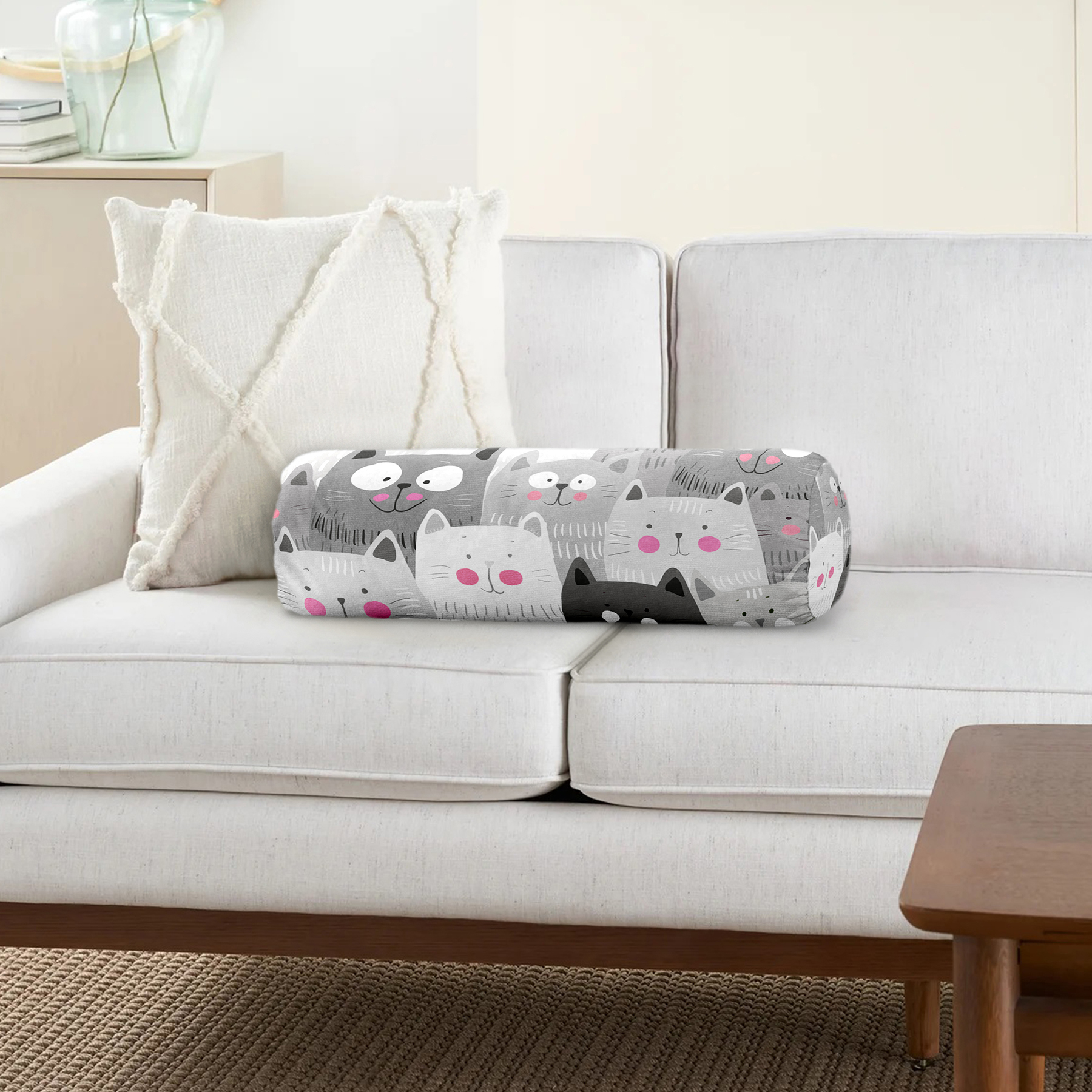 Sevimli Kedi Motifli Dijital Baskılı Özel Tasarım Modern İç Dolgulu Fermuarlı Çok Amaçlı Silindir Yastık Kırlent
