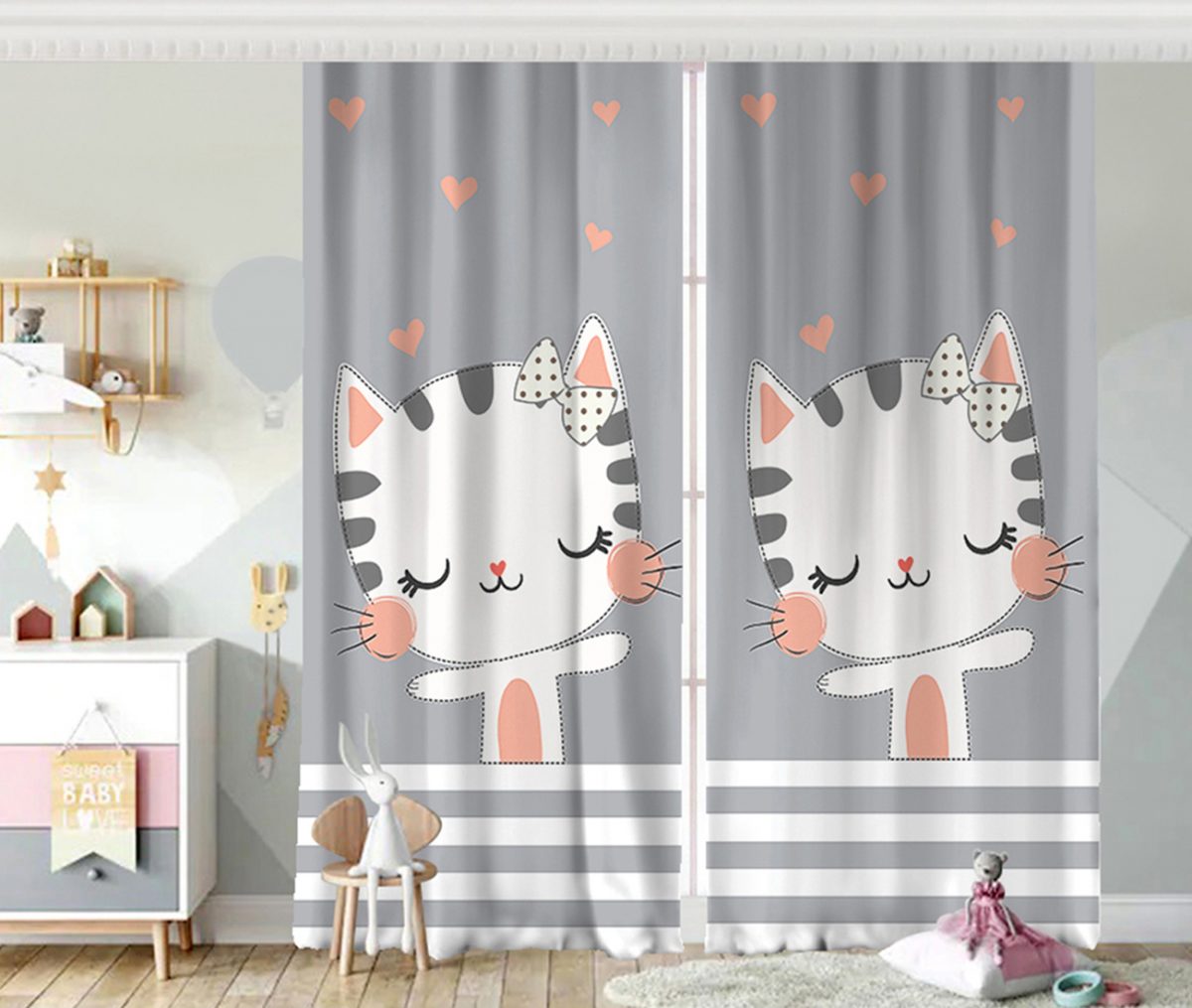 Sevimli Kedicik Desenli Çocuk Odası Fon Perde