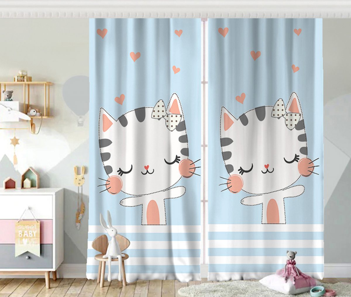 Sevimli Kedicik Desenli Çocuk Odası Fon Perde