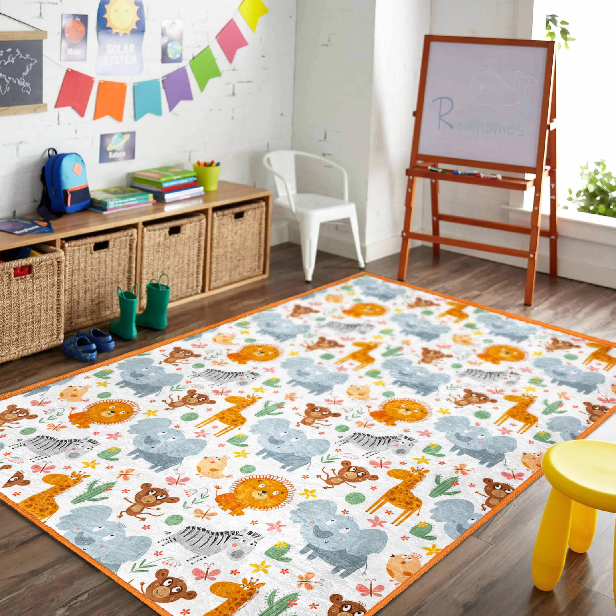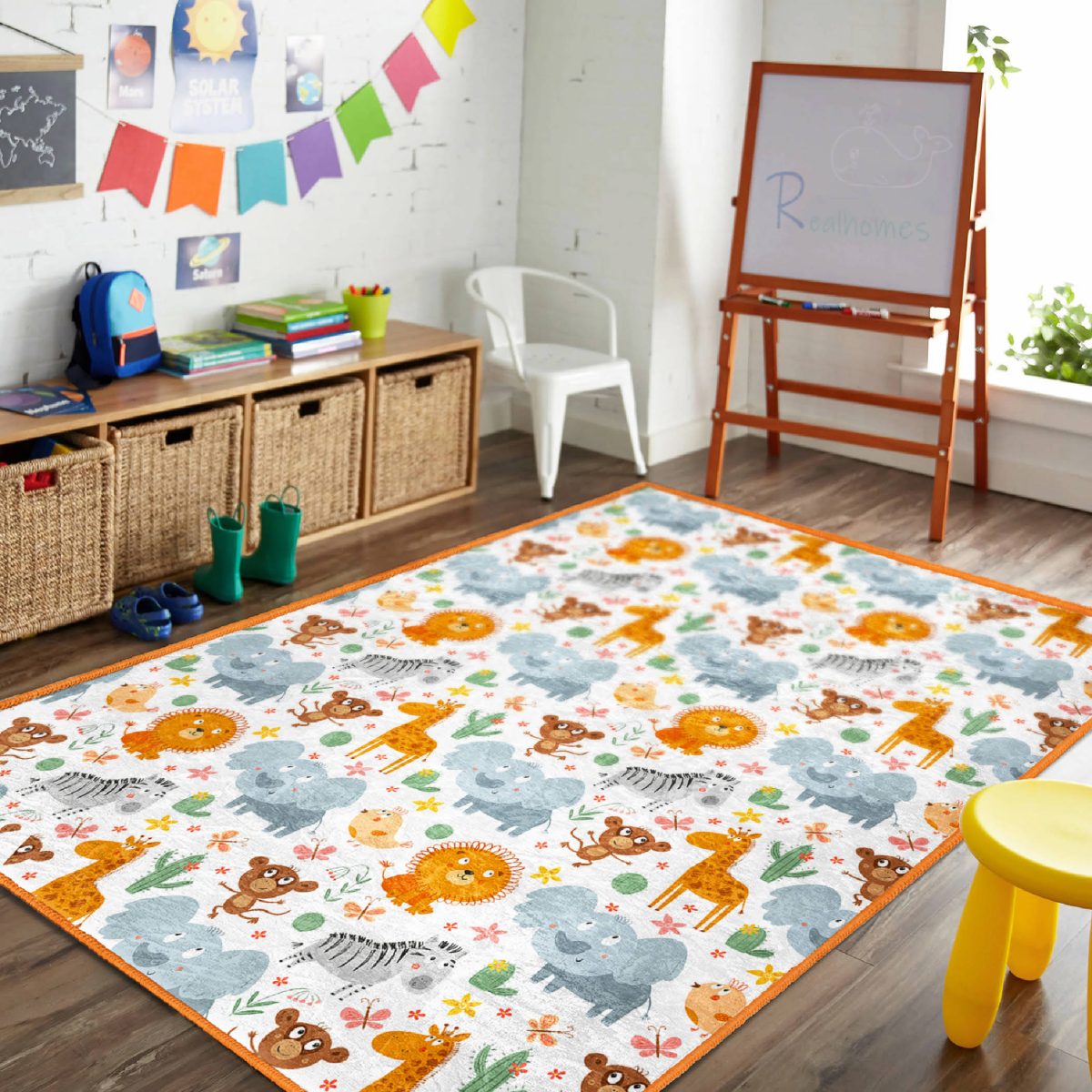 Sevimli Orman Hayvanları Desenli Çocuk & Genç Odası Makinede Yıkanabilir Kaymaz Tabanlı Dikdörtgen Dekoratif Özel Ölçü Çocuk Halısı