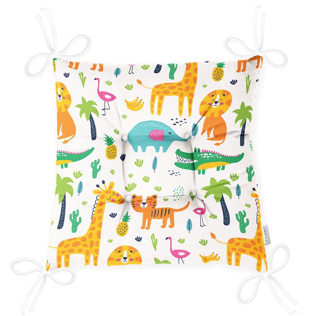 Sevimli Orman Hayvanları Desenli Dijital Baskılı Özel Tasarım Modern Pofuduk Sandalye Minderi Realhomes