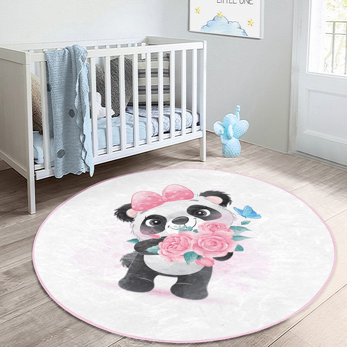 Sevimli Yavru Panda Çocuk & Genç Odası Makinede Yıkanabilir Kaymaz Tabanlı Yuvarlak Çocuk Halısı