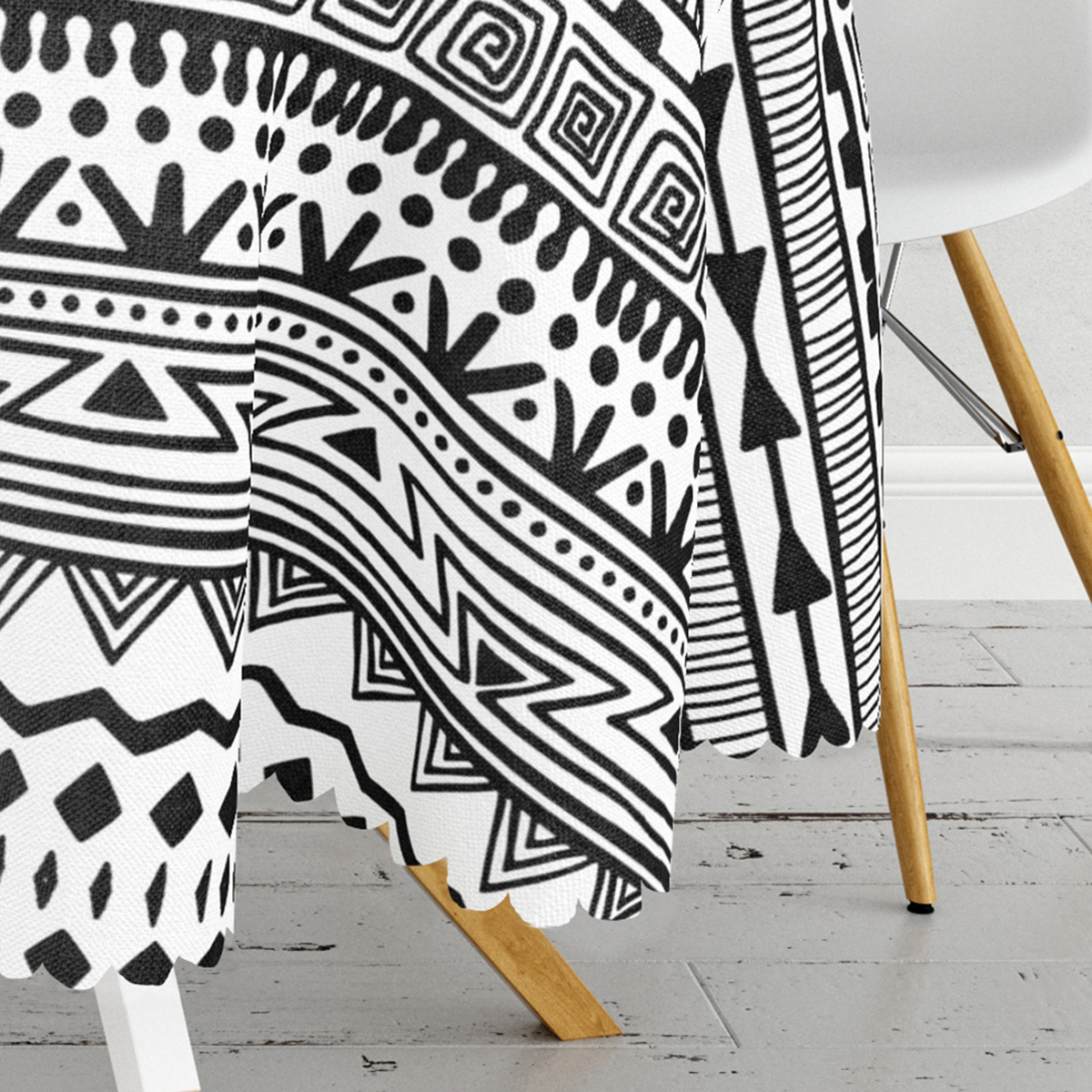 Siyah Beyaz African Motifli Modern Yuvarlak Masa Örtüsü – Çap 140cm