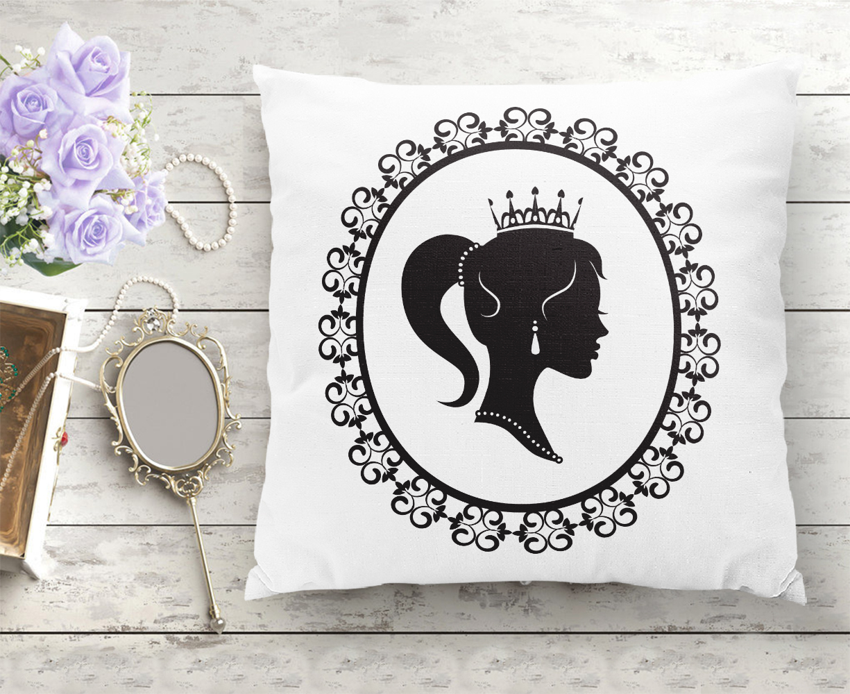 Siyah Beyaz Bayan Resimli Dijital Yastık Kırlent Kılıfı