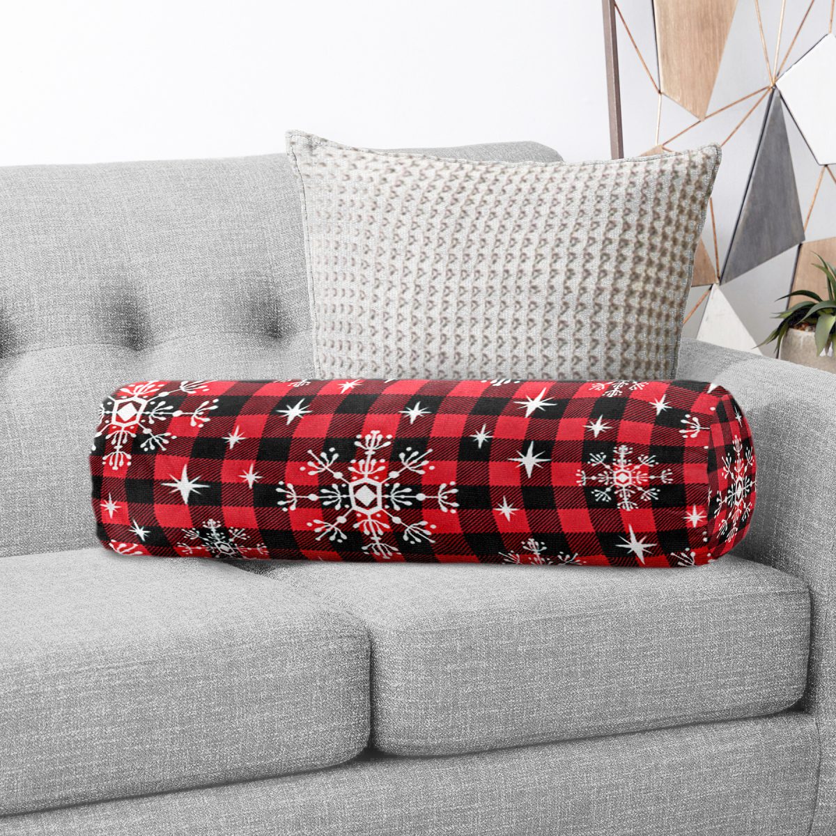 Siyah Beyaz Ekose Desenli Altın Yaldızlı Dekoratif İç Dolgulu – Fermuarlı Süet Silindir Yuvarlak Yastık Kırlent