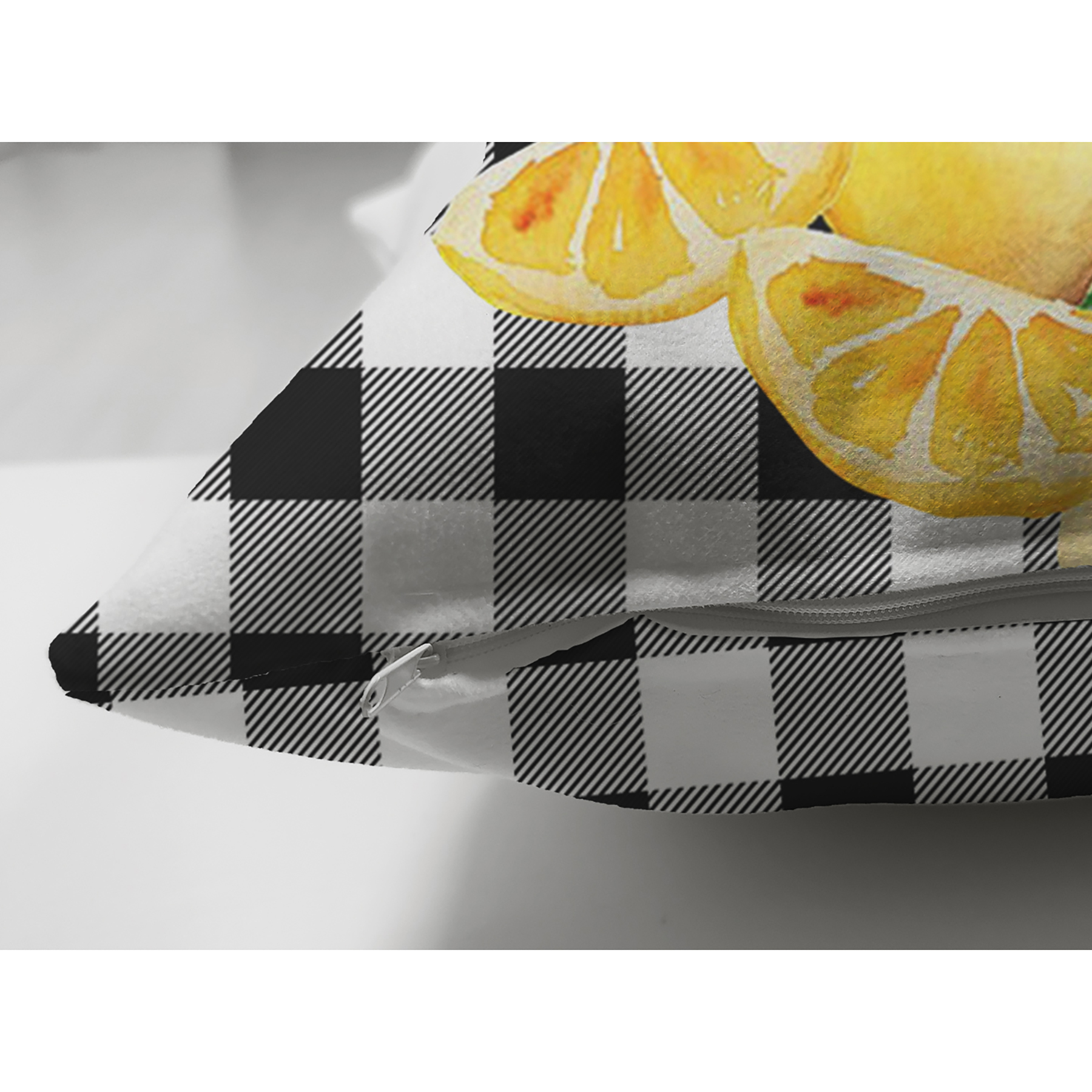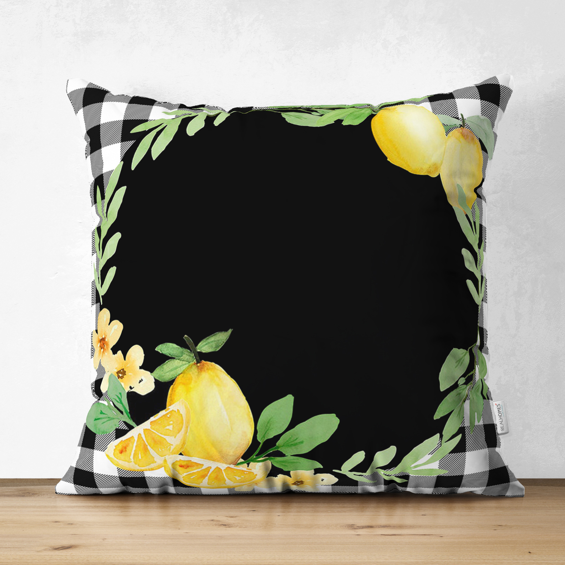 Siyah Beyaz Ekose Limon Motifli Modern Süet Yastık Kırlent Kılıfı