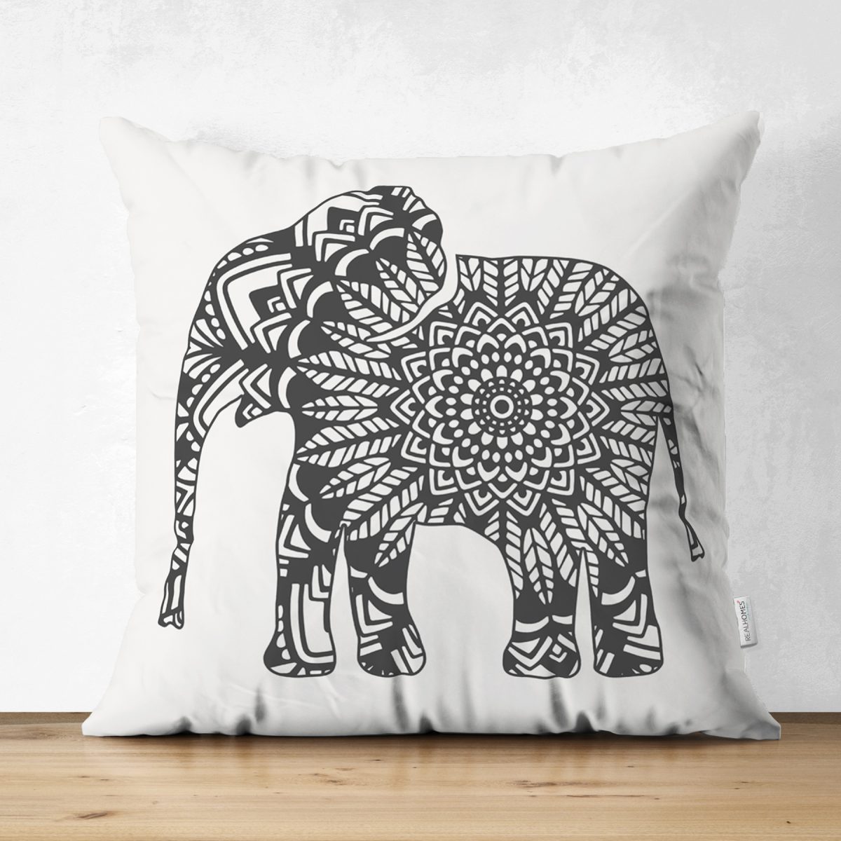 Siyah Beyaz Fil Tasarımlı Dijital Baskılı Süet Yastık Kırlent Kılıfı Realhomes