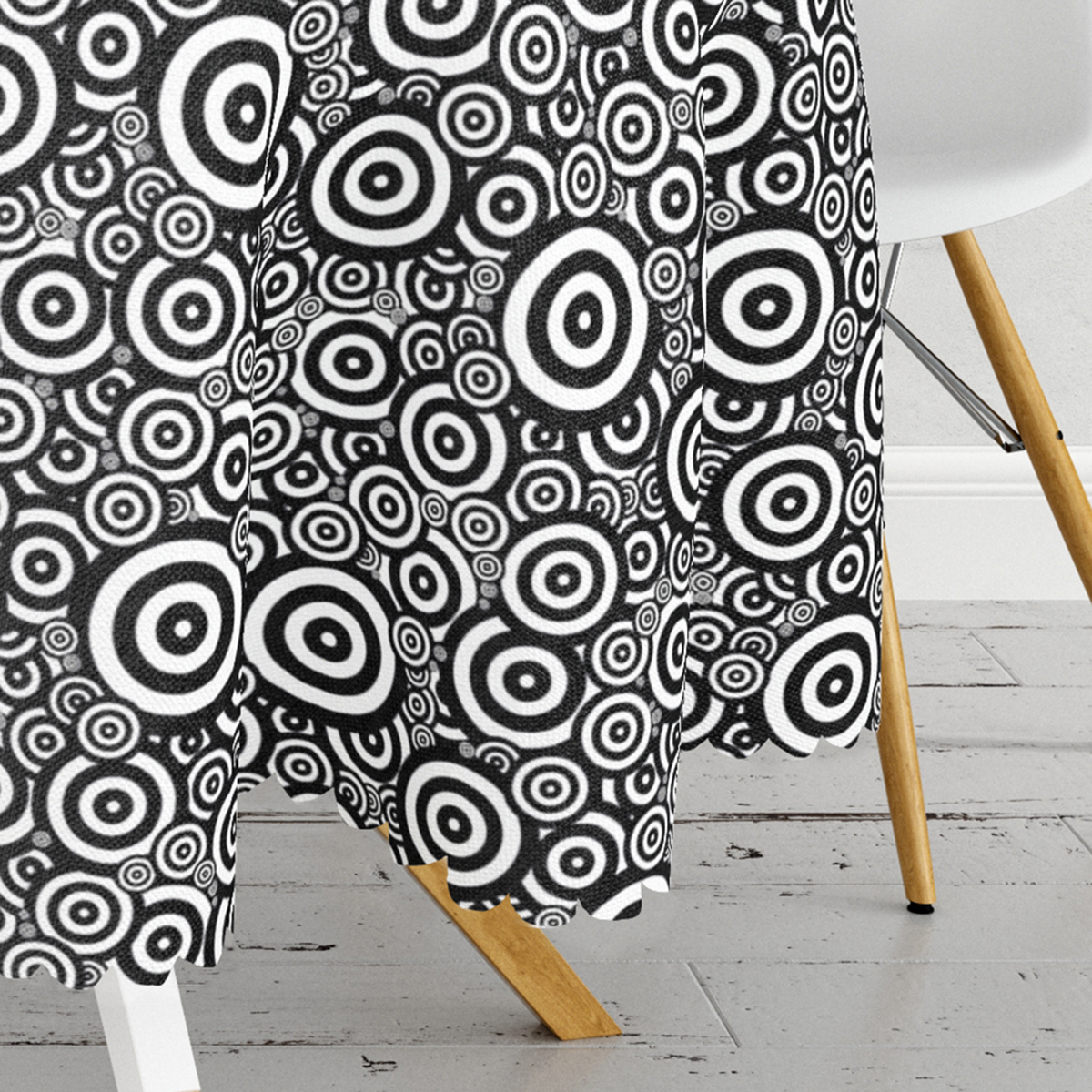 Siyah Beyaz Geometrik Yuvarlak Tasarımlı Modern Yuvarlak Masa Örtüsü – Çap 140cm
