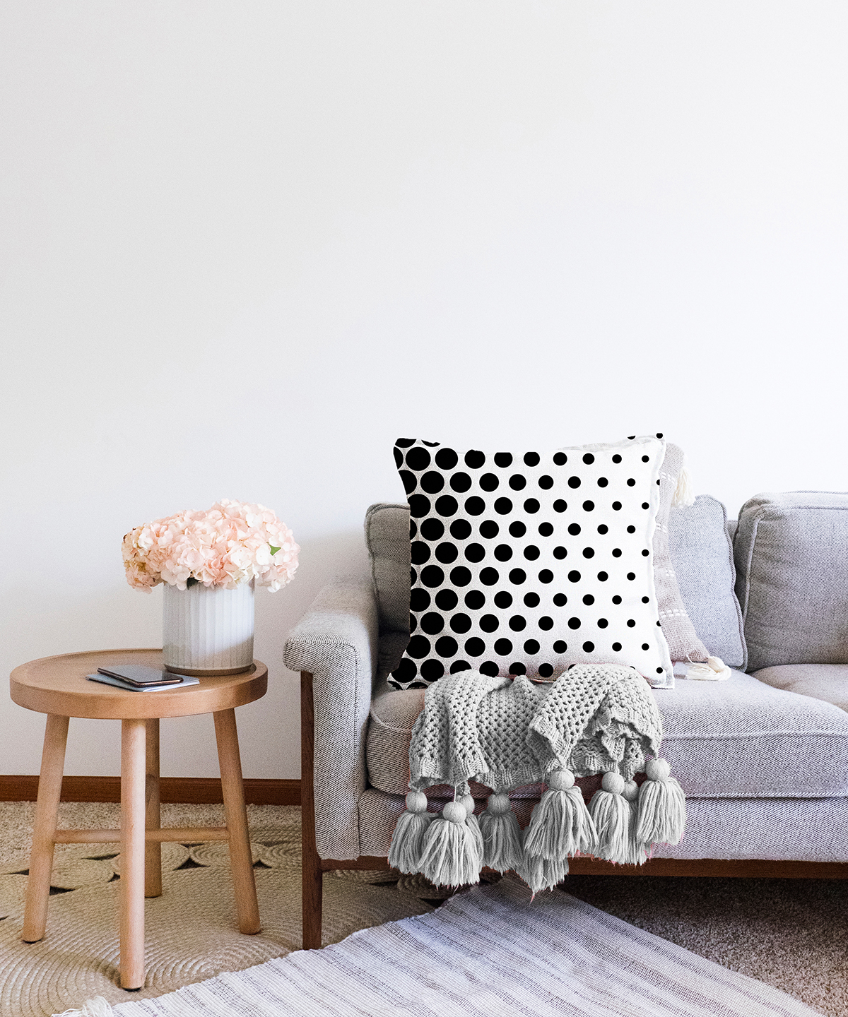 Siyah Beyaz İri Puanlı Raşel Kadife Yastık Kırlent Kılıfı
