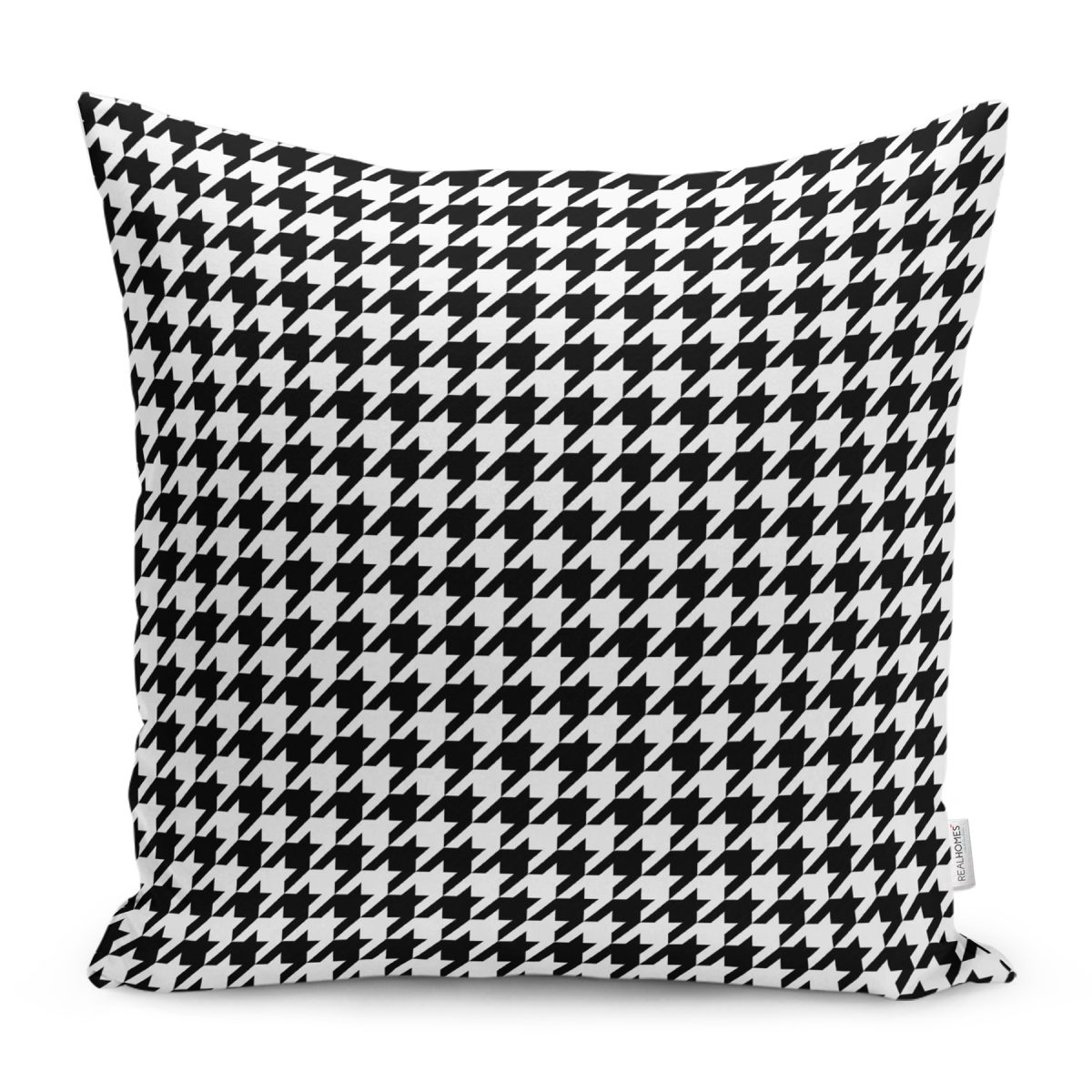 Siyah Beyaz Kazayağı Tasarımlı Dekoratif Yastık Kırlent Kılıfı Realhomes