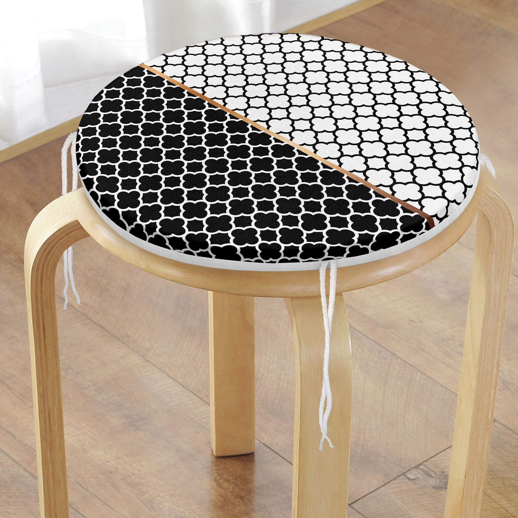 Siyah & Beyaz Ogea Desenli Dijital Baskılı Yuvarlak Fermuarlı Sandalye Minderi