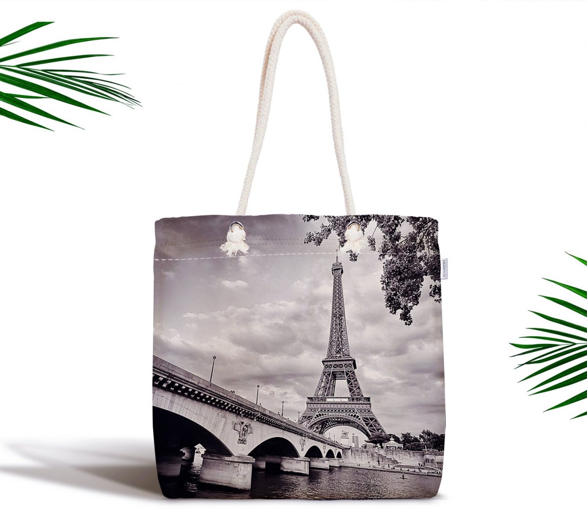 Siyah Beyaz Paris Tasarımlı Dijital Baskılı Fermuarlı Bez Çanta