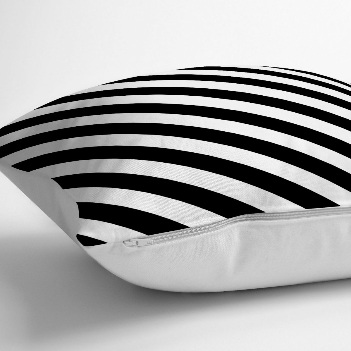 Siyah Beyaz Şeritli Dijital Baskılı Yer Minderi – 70 x 70 cm