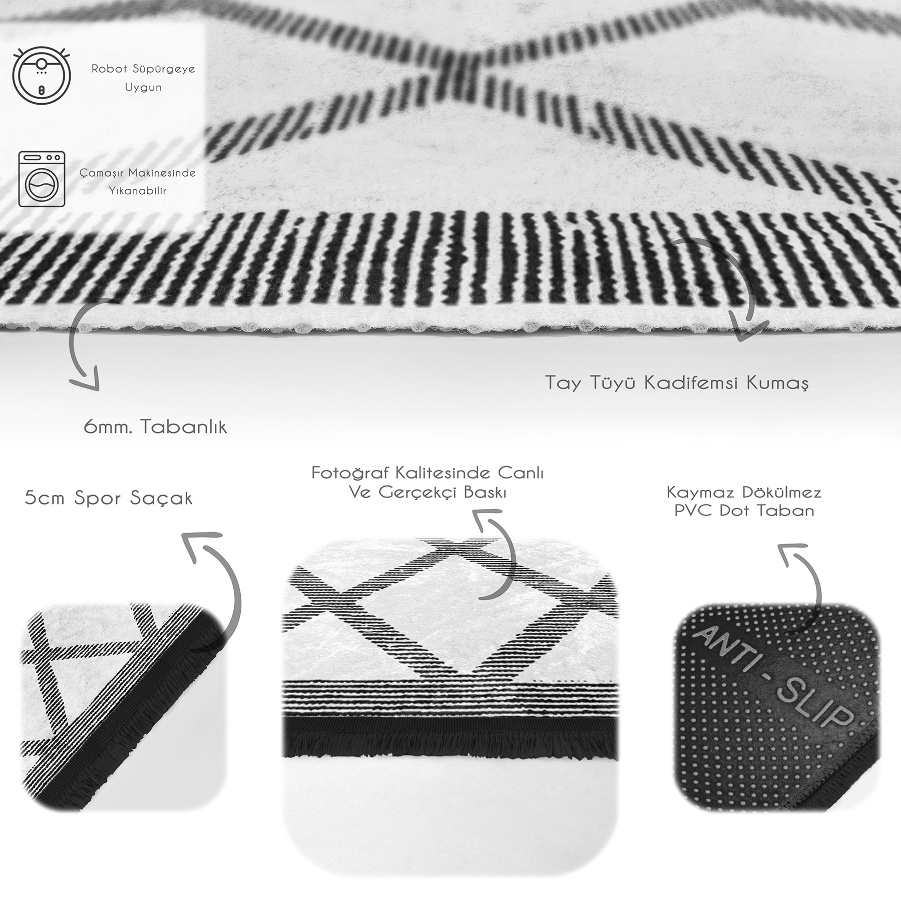 - Dökülmez kaymaz taban, Püsküllü kenar detayı.