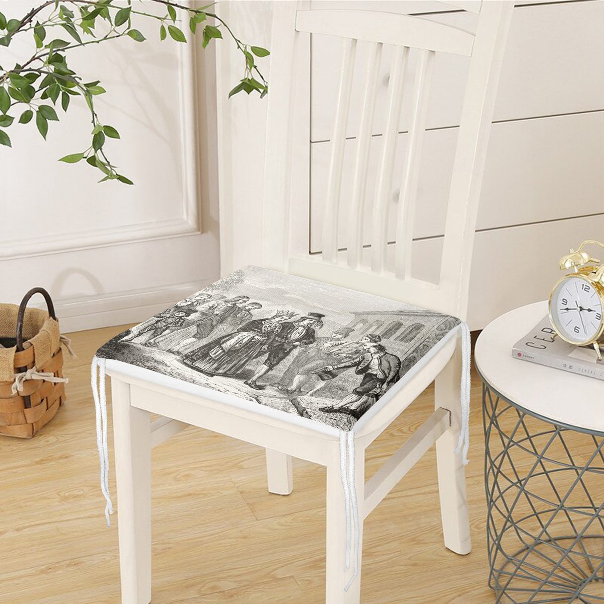 Siyah Beyaz Zeminde Kral Ve Kraliçe Motifli Dekoratif Fermuarlı Sandalye Minderi