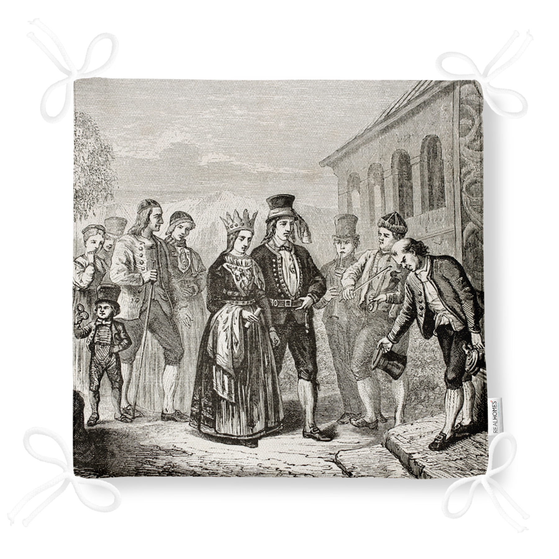 Siyah Beyaz Zeminde Kral Ve Kraliçe Motifli Dekoratif Fermuarlı Sandalye Minderi Realhomes