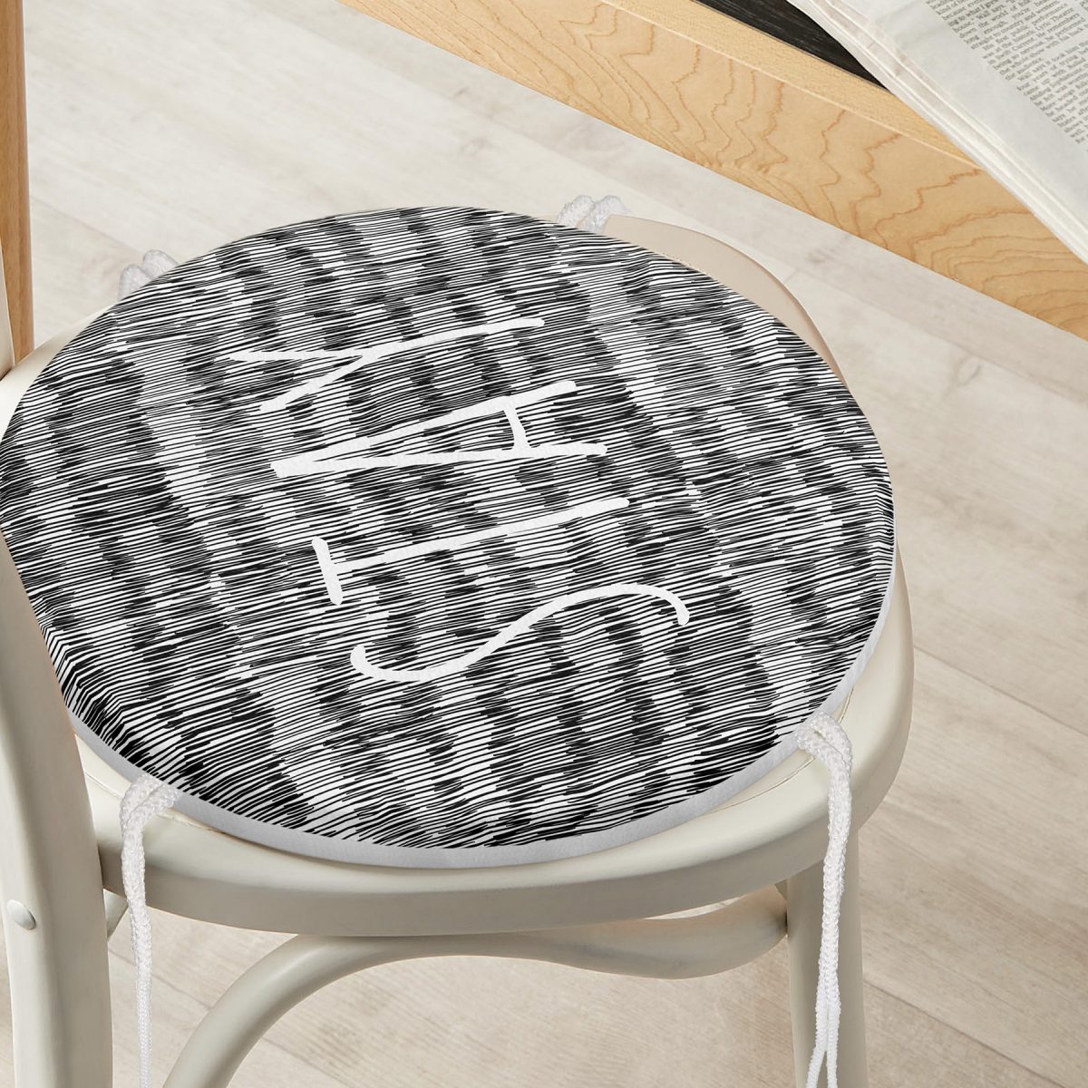 Siyah Beyaz Zeminli Onedraw Çizimli Stay Yazılı Dijital Baskılı Modern Yuvarlak Fermuarlı Sandalye Minderi