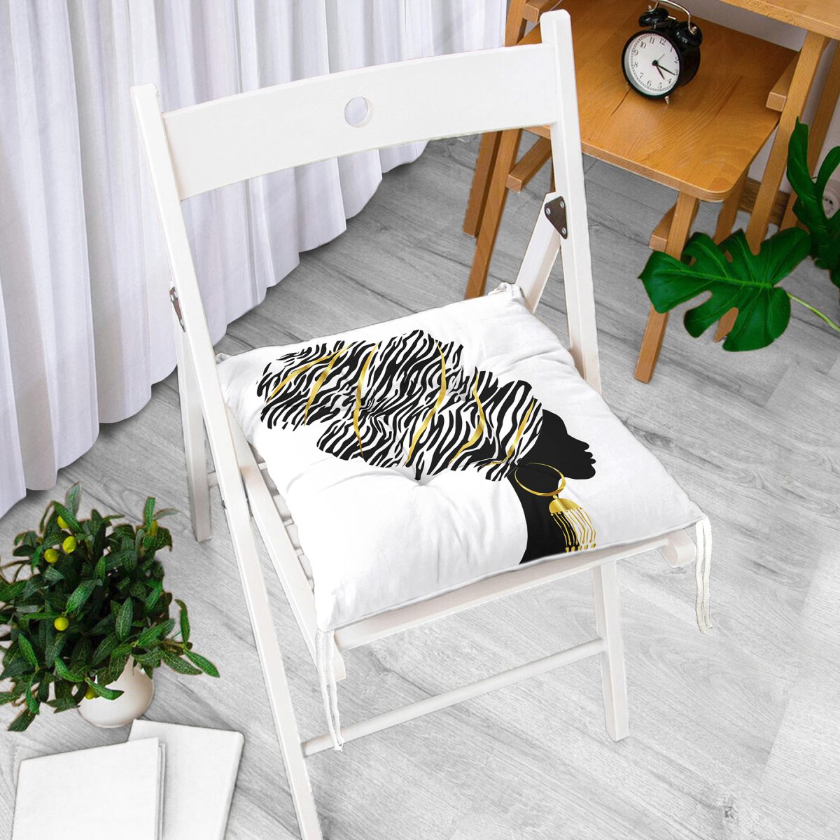 Siyah Beyaz Zenci Kadın Motifli Modern Dekoratif Pofuduk Sandalye Minderi