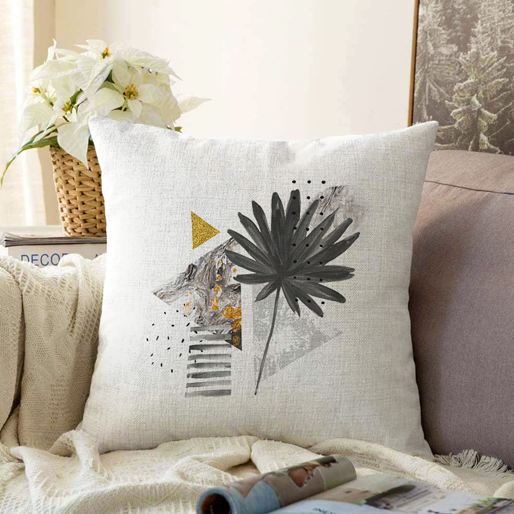 Siyah Çiçek Üçgen Tasarımlı Dijital Baskılı Raşel Kadife Yastık Kırlent Kılıfı
