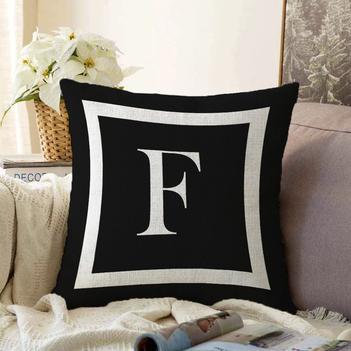 Siyah Zemin Beyaz Çerçeveli F Harfi Dijital Baskılı Raşel Kadife Yastık Kırlent Kılıfı