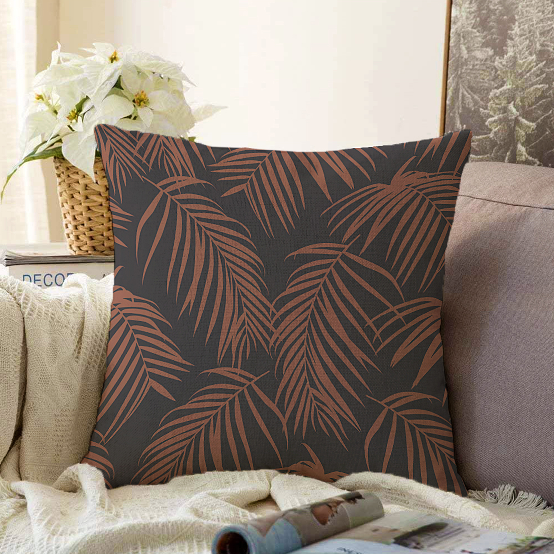 Siyah Zemin Kahve Tüy Tasarımlı Raşel Kadife Yastık Kırlent Kılıfı