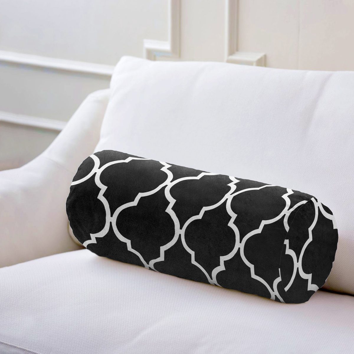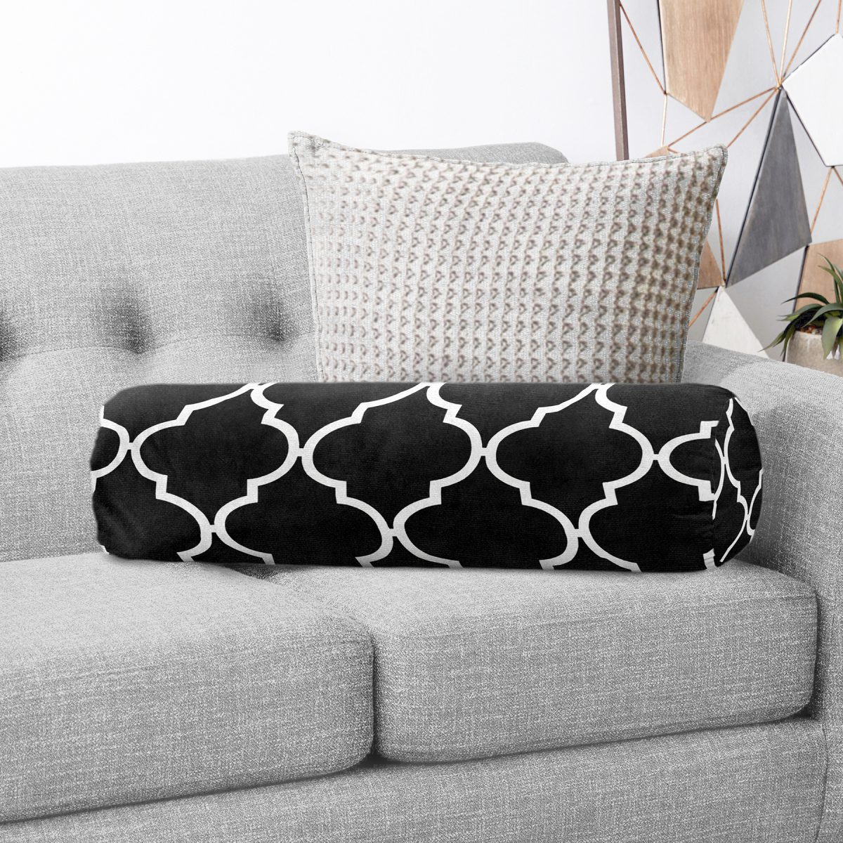 Siyah Zemin Ogea Desenli Dijital Baskılı İç Dolgulu Süet Silindir Yastık Kırlent – Bel Yastığı
