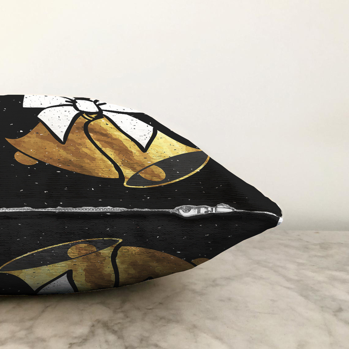 Siyah Zemin Sarı Çan Desenli Dijital Baskılı Modern Raşel Kadife Yastık Kırlent Kılıfı
