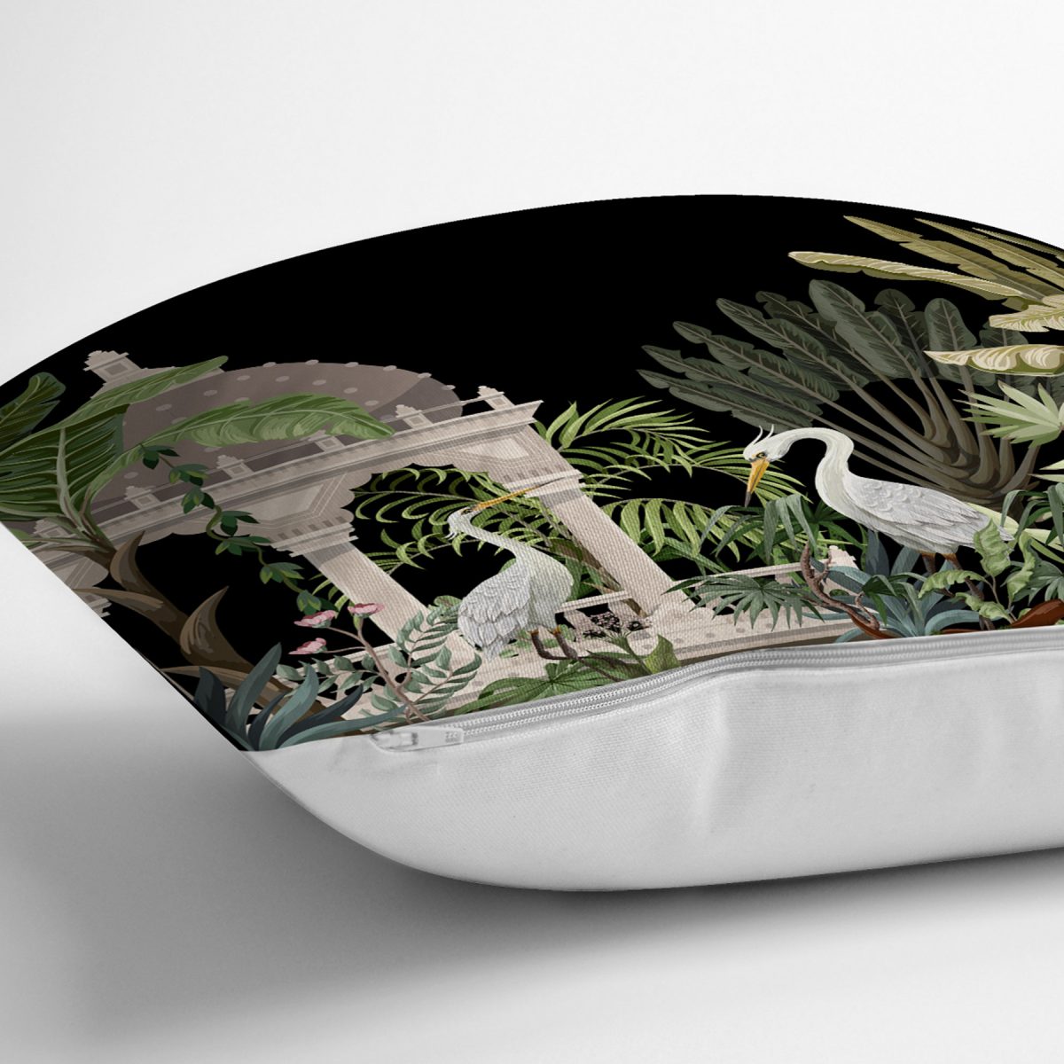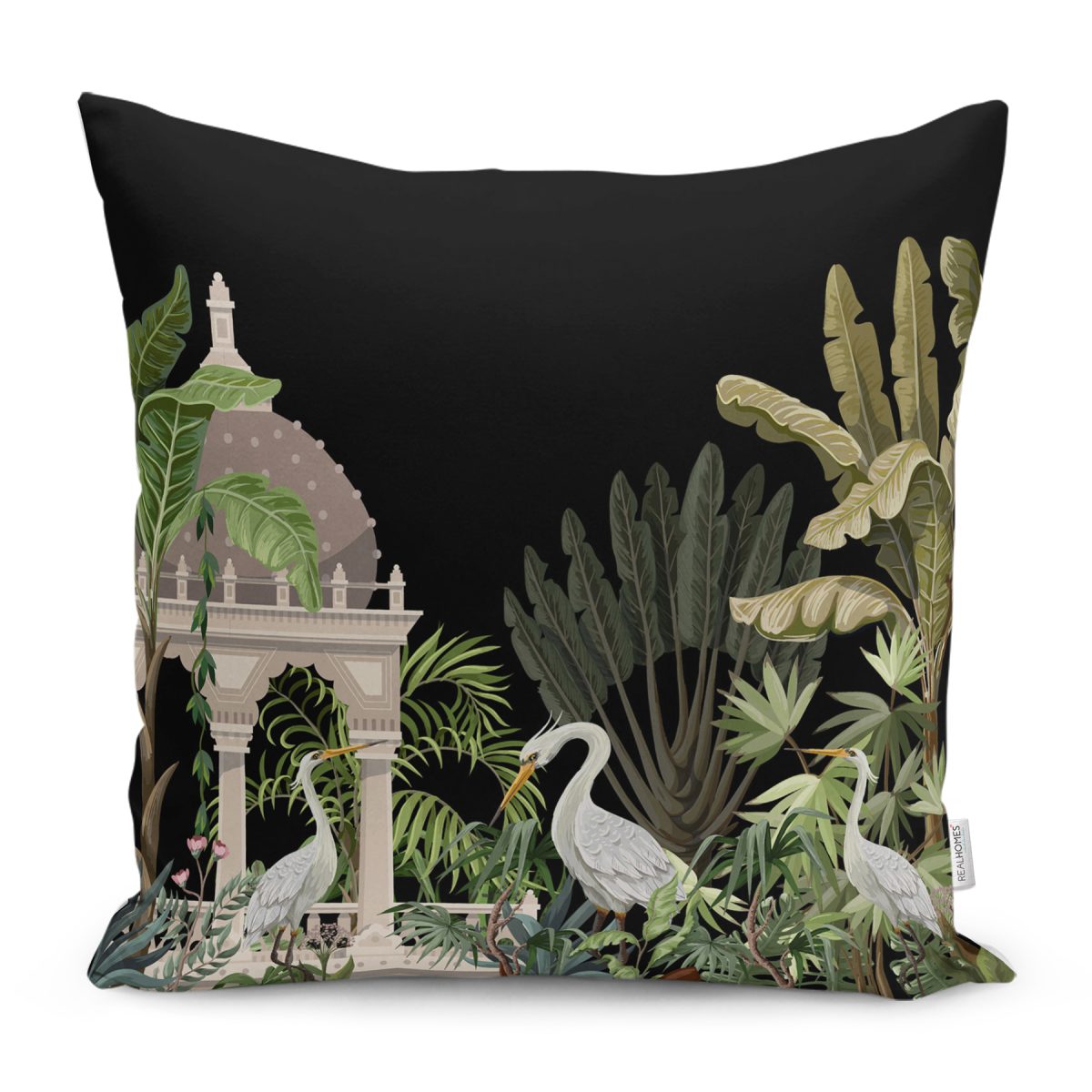 Siyah Zemin Tropik Hayvan & Yaprak Tasarımlı Modern Yastık Kırlent Kılıfı Realhomes