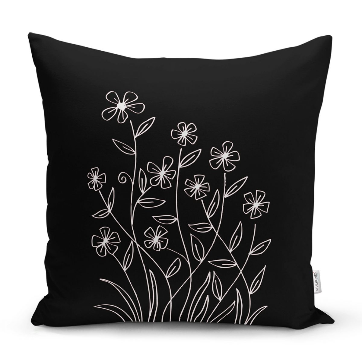 Siyah Zemin Üzerinde Çiçek Motifli Özel Tasarım Kırlent Kılıfı Realhomes