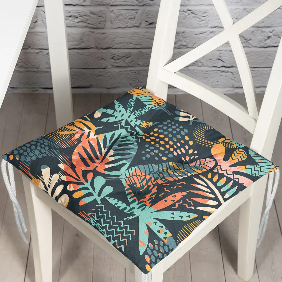 Renkli Zemin Tropik Yaprak Çizimli Dijital Baskılı Modern Pofuduk Sandalye Minderi Orijinal fiyat: 304,99 ₺.Şu andaki fiyat: 269,99 ₺.