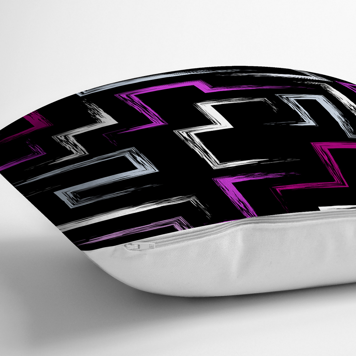 Siyah Zemin Üzerinde Renkli Geometrik Desenli Dijital Baskılı Modern Yastık Kılıfı
