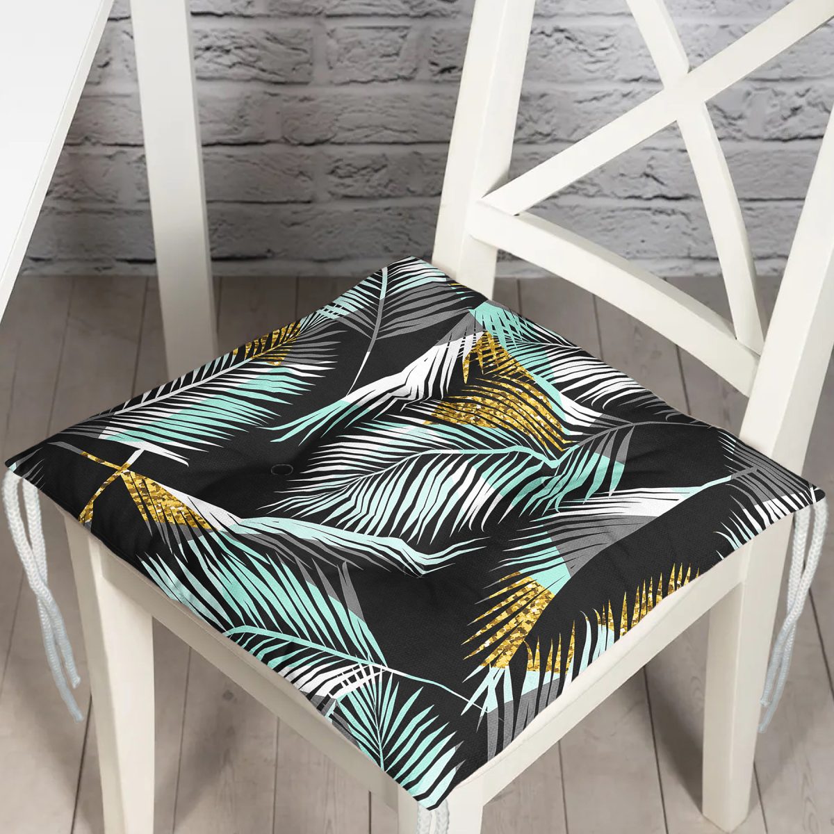 Siyah Zemin Üzerinde Yaprak Desenli Dijital Baskılı Modern Pofuduk Sandalye Minderi Realhomes