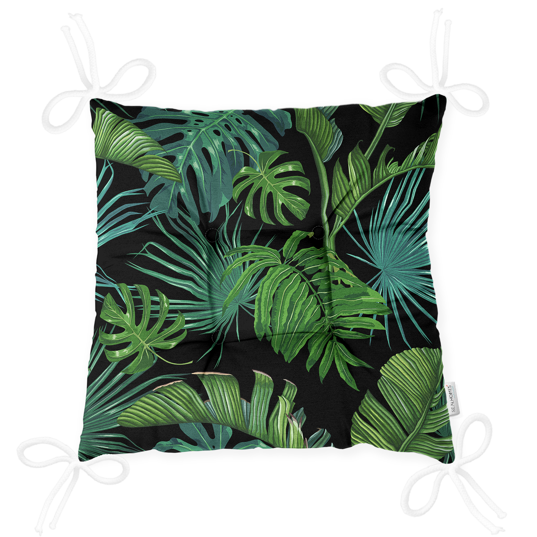 Siyah Zemin Üzerinde Yeşil Yaprak Desenli Dijital Baskılı Modern Pofuduk Sandalye Minderi Realhomes