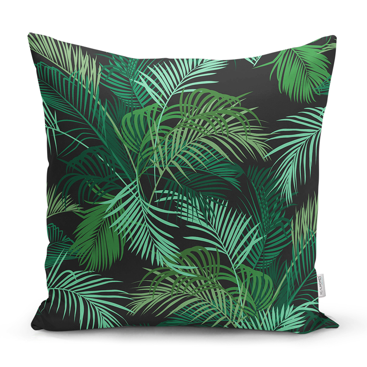 Siyah Zemin Üzerinde Yeşil Yaprak Desenli Yastık Kırlent Kılıfı Realhomes