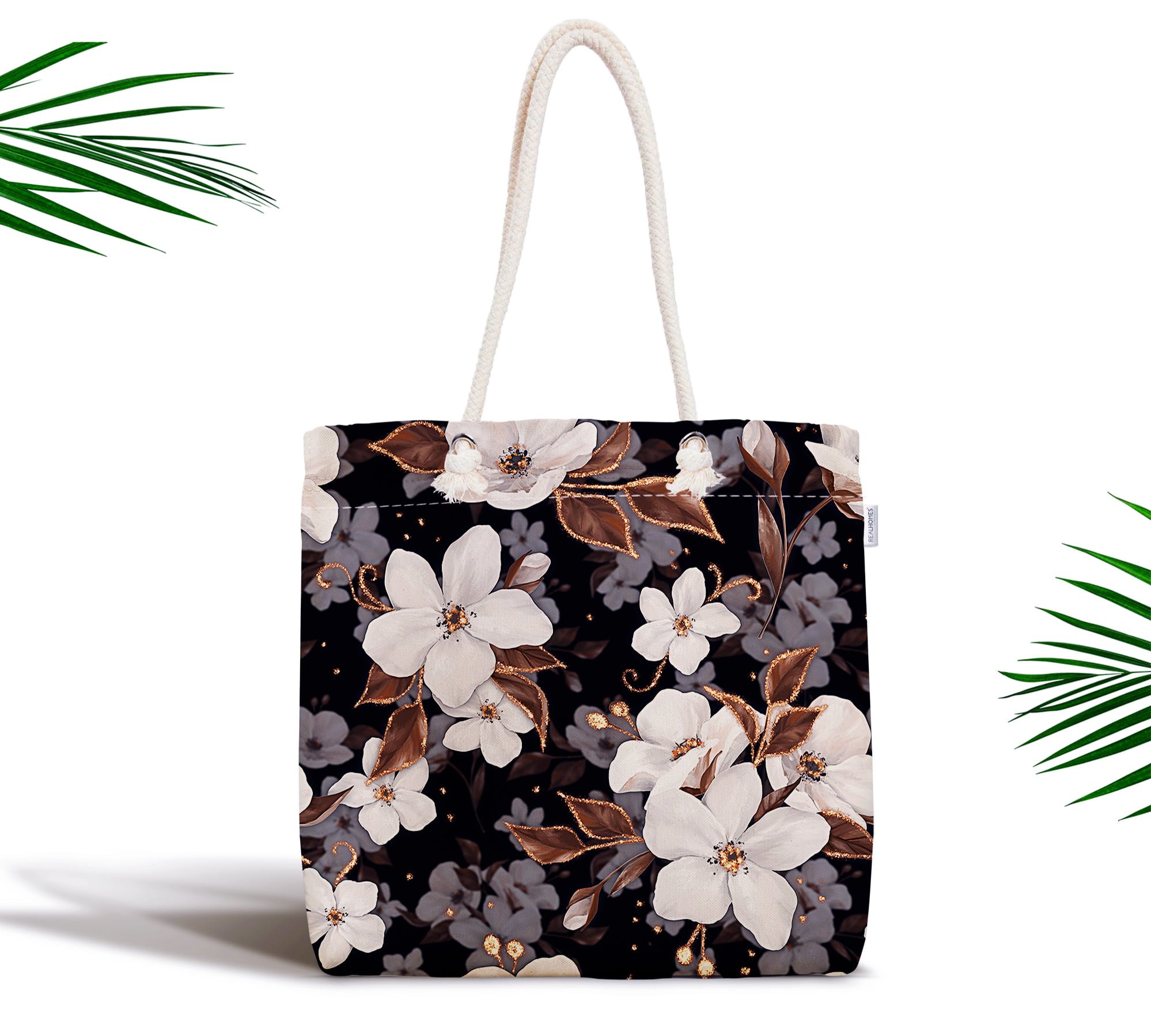 Siyah Zeminde 3D Çiçekler Temalı Modern Fermuarlı Kumaş Çanta