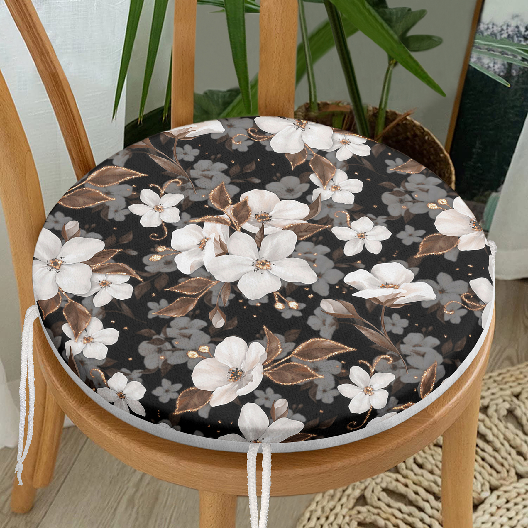 Siyah Zeminde 3D Çiçekler Temalı Modern Yuvarlak Fermuarlı Sandalye Minderi